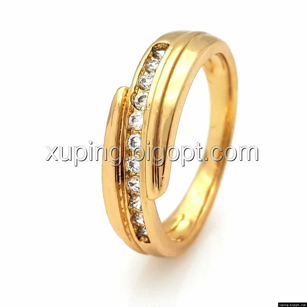 Кольцо позолоченное, ряд камней, р.16,5, р.17, р.18, Xuping