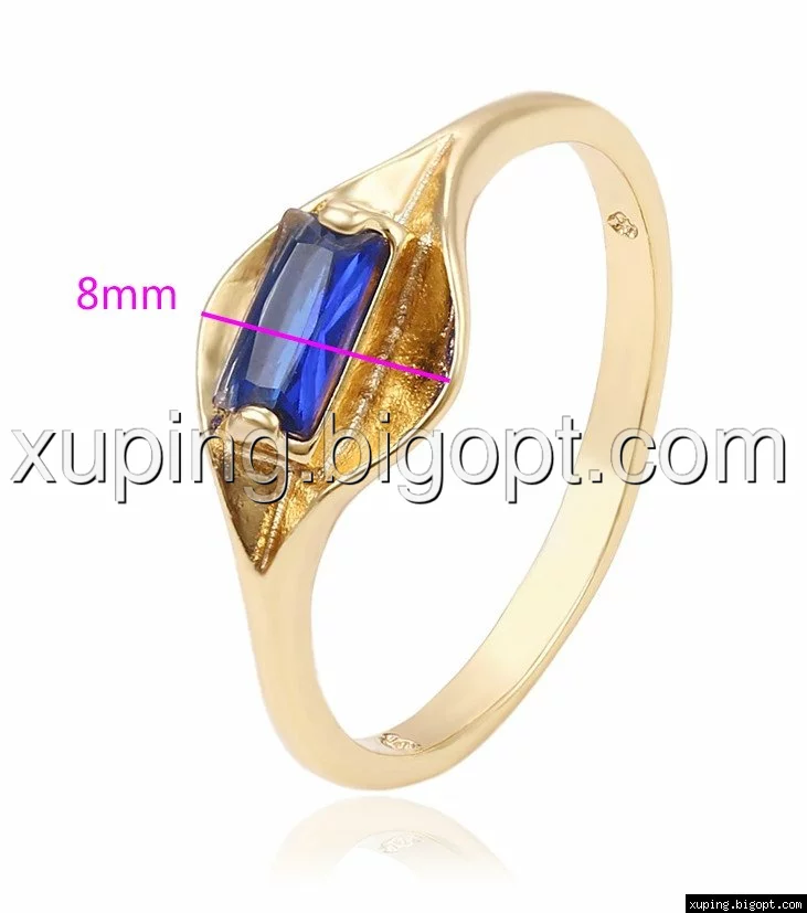 Кольцо позолоченное с синим цирконием, р.16,5, р.17, р.18