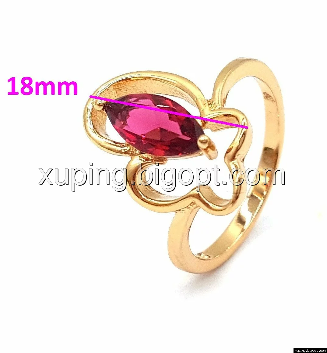 Кольцо позолоченное с цирконием под рубин, р.17,5