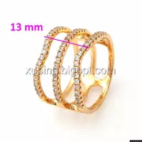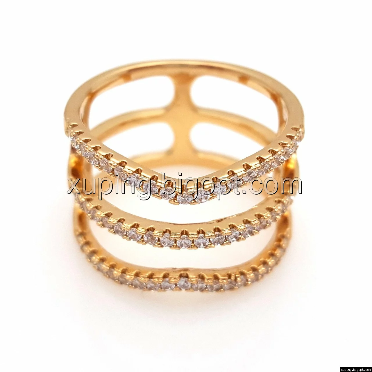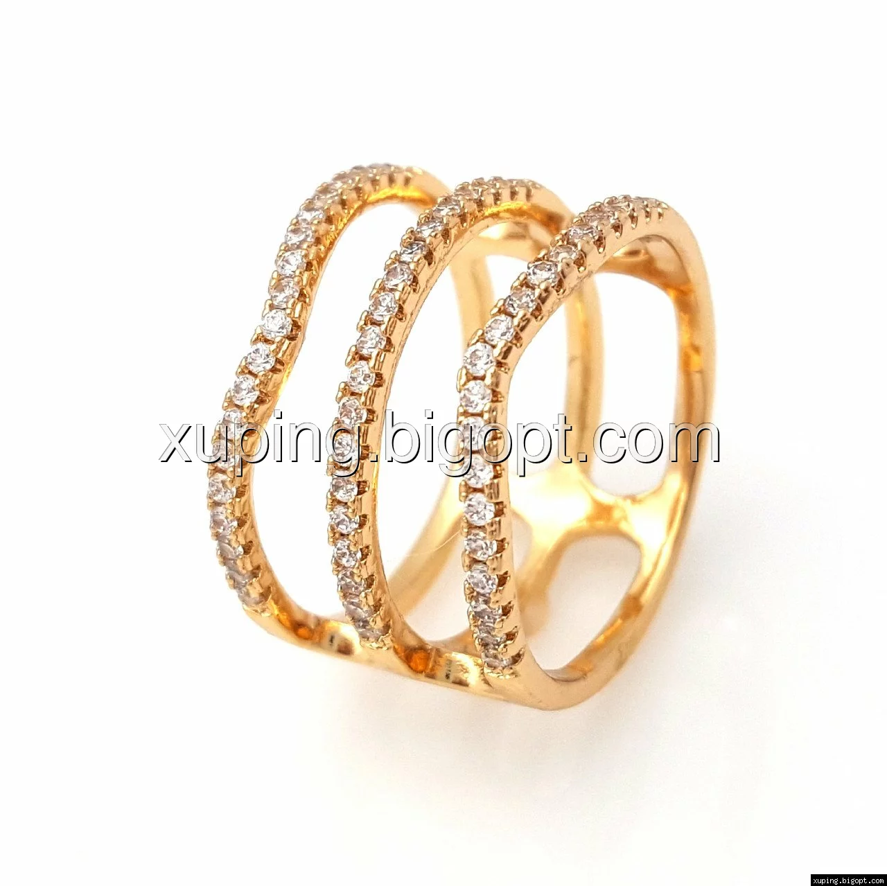 Кольцо позолоченное, Три дорожки с цирконием, р.17,5,