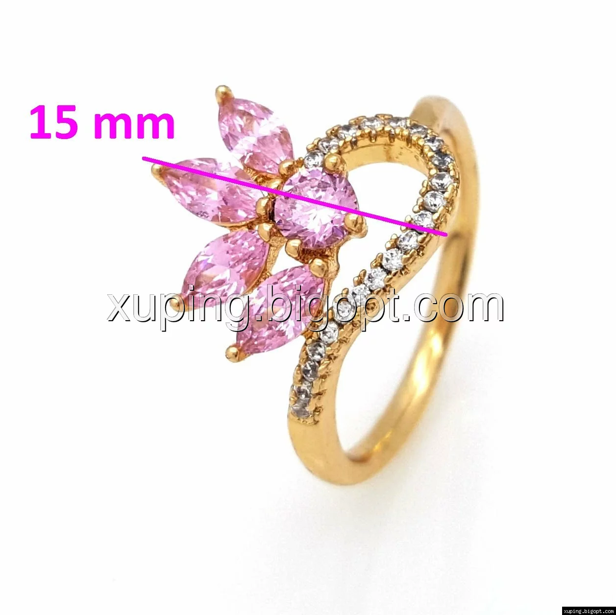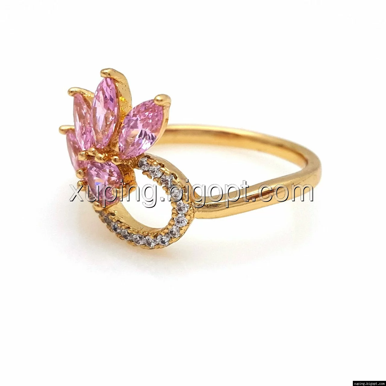 Кольцо позолоченное, Цветок с розовым цирконием, р.17,5 р.18, р.18,5