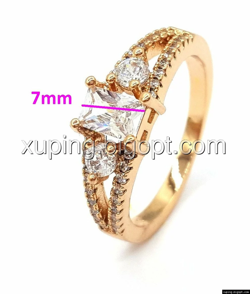 Кольцо позолота, Россыпь циркония с прямоугольным камнем по центру, р.17, р.18