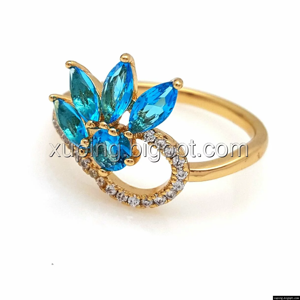 Кольцо позолота Xuping, Цветок с бирюзовым цирконием, р.17, р.18, р.19