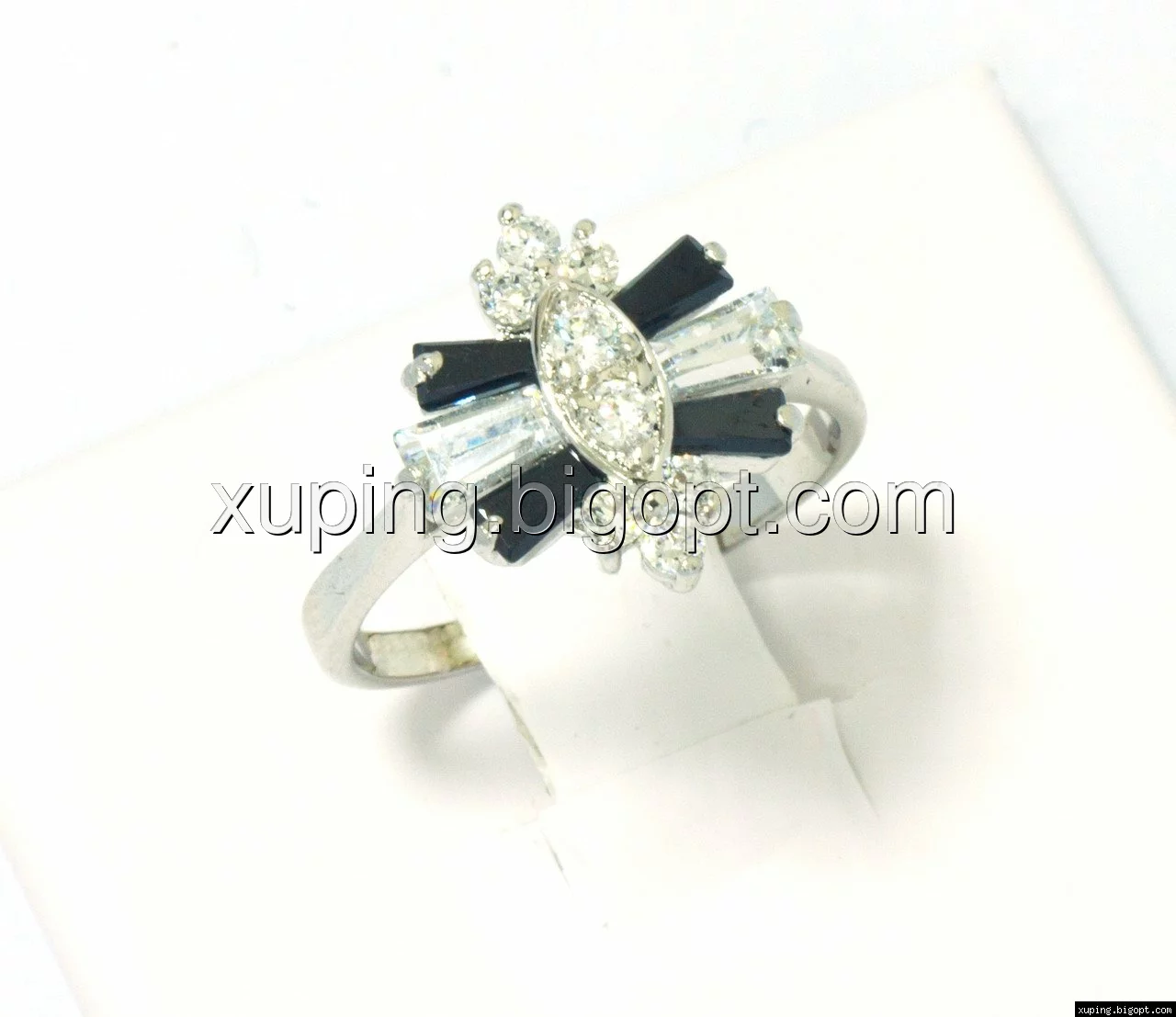 Колечко Родій, Чорно - білий багетний цирконій. р17,5
