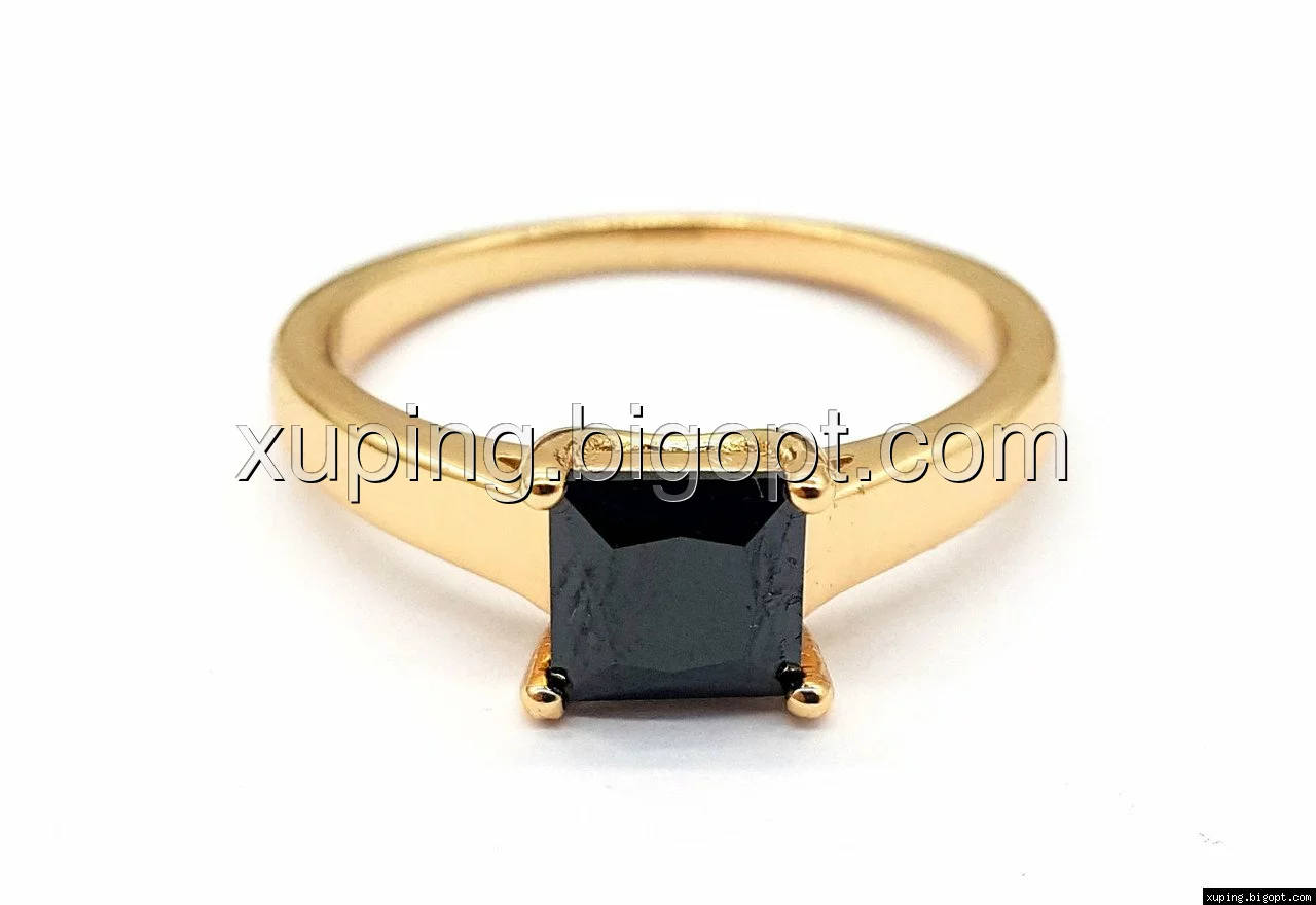 Кольцо с черным цирконием р.18,5, позолота