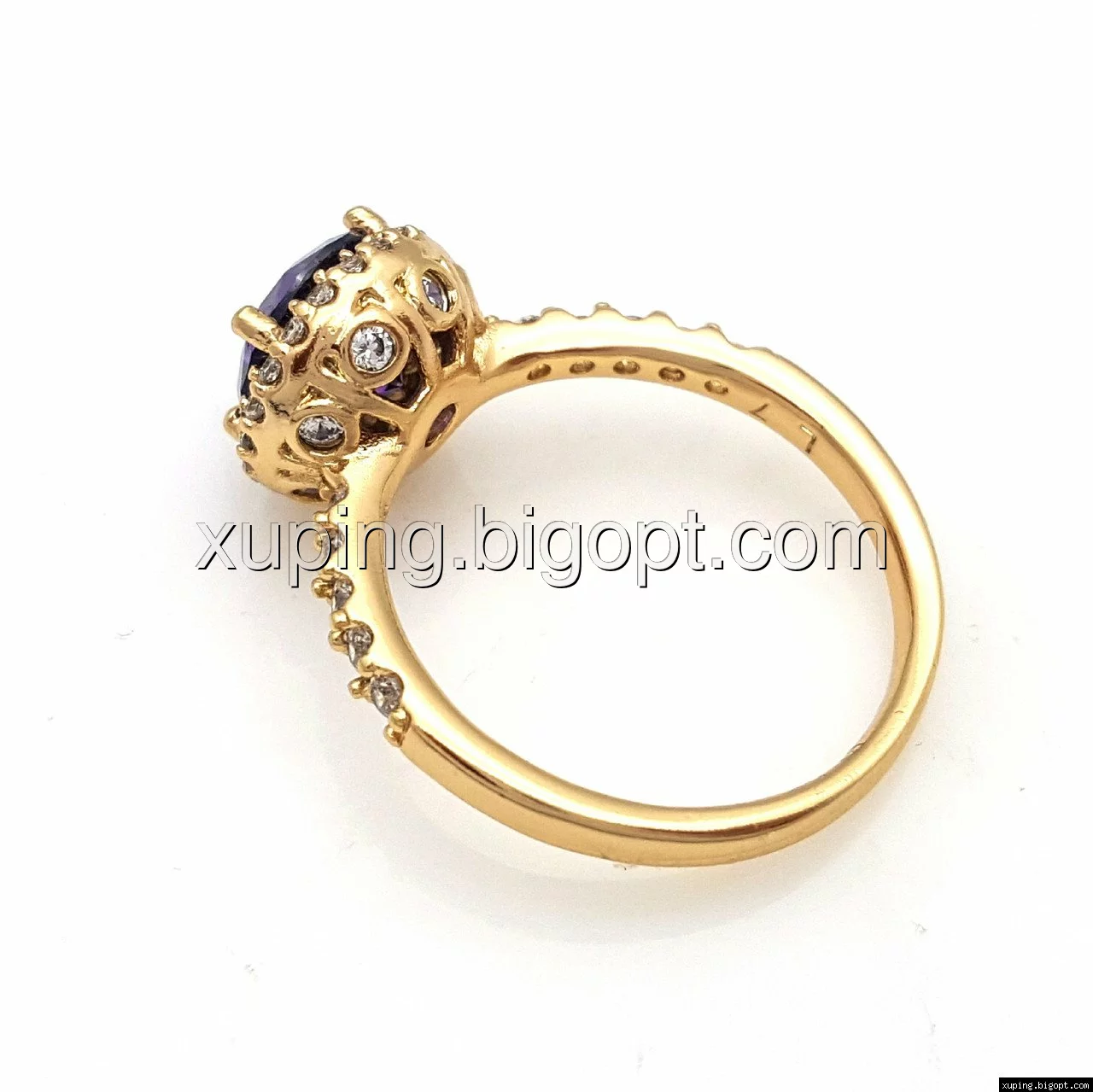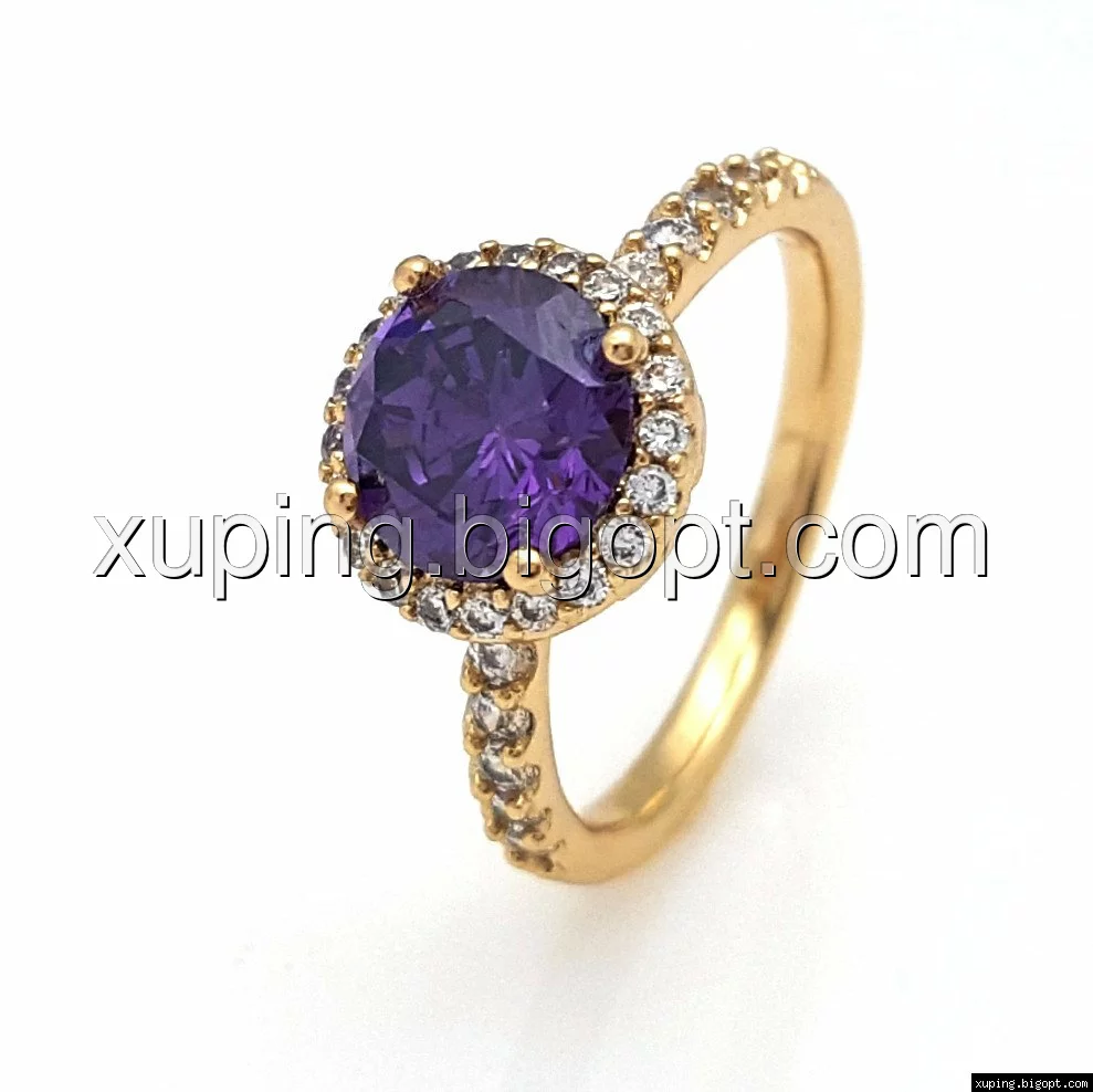 Кольцо с фиолетовым цирконием, р.17, р.18, р.18,5, позолота