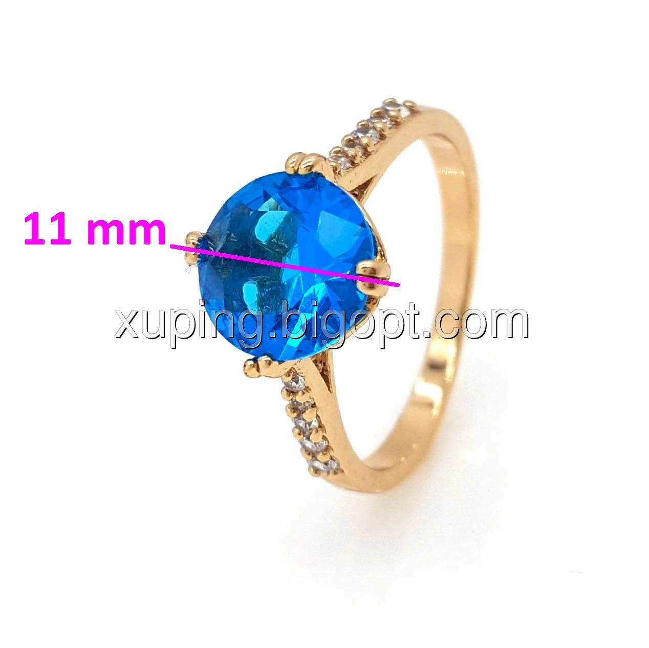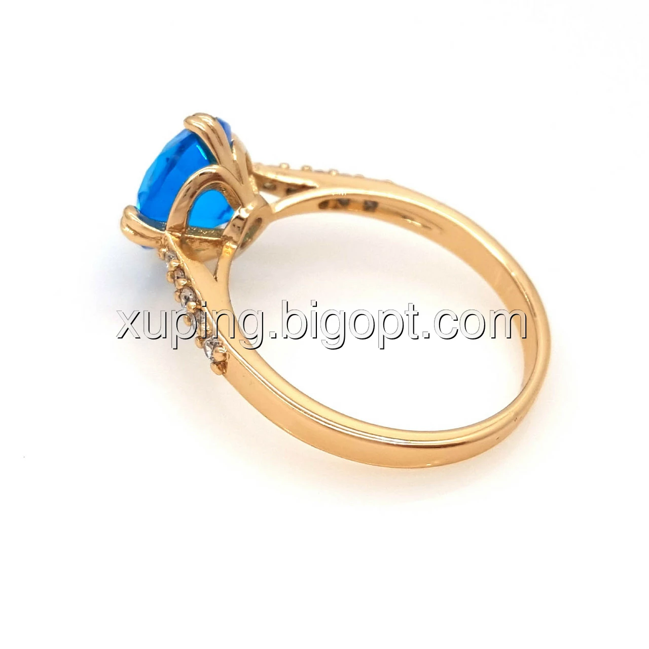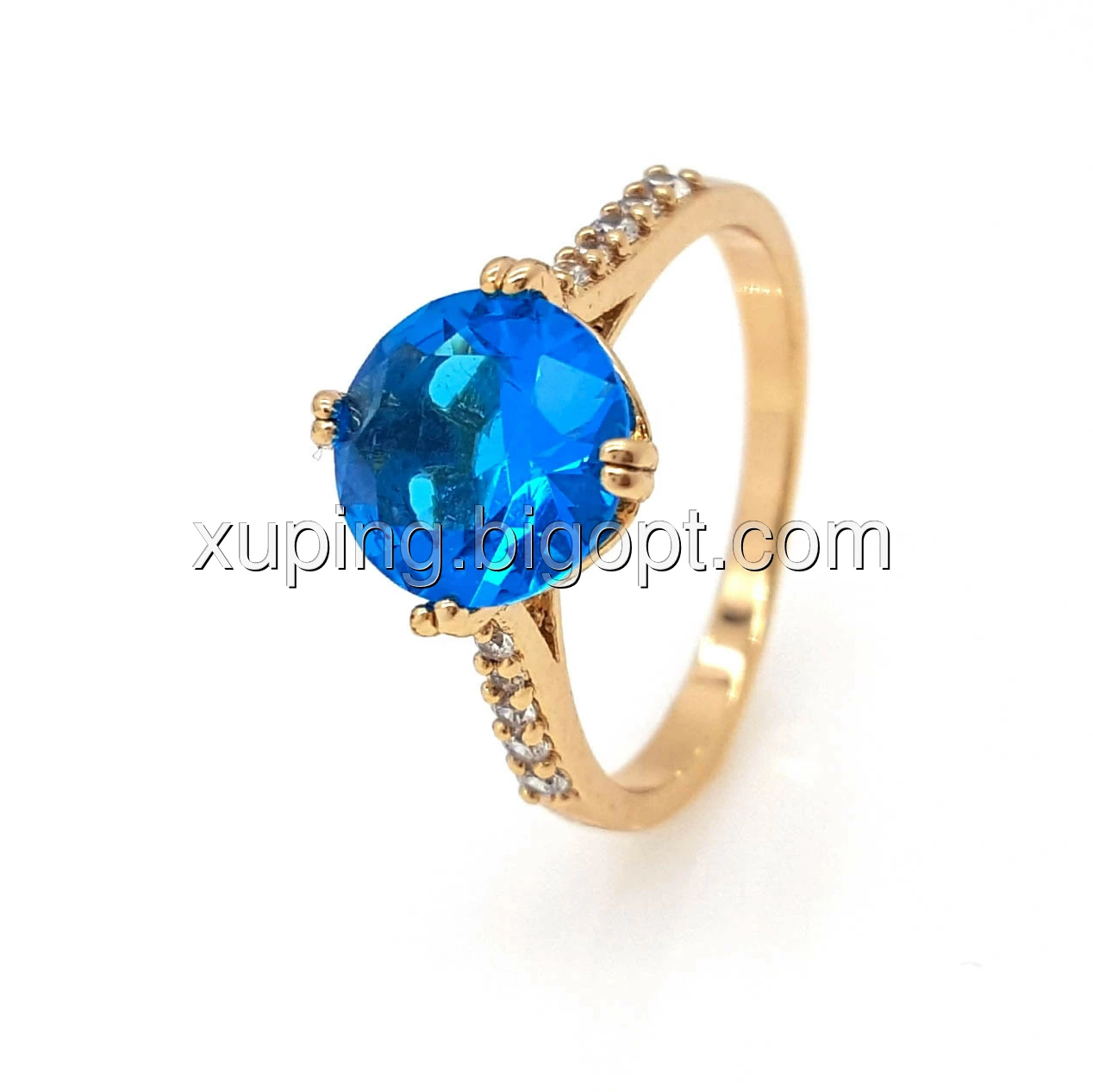 Кольцо с голубым цирконием, р.18, р.18,5, р.19,5, позолота Xuping