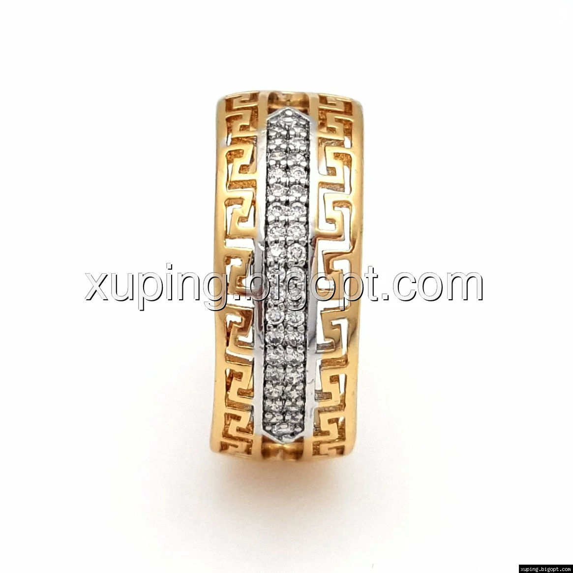 Кольцо с Греческим узором, россыпь камней, р.17, позолота+родий