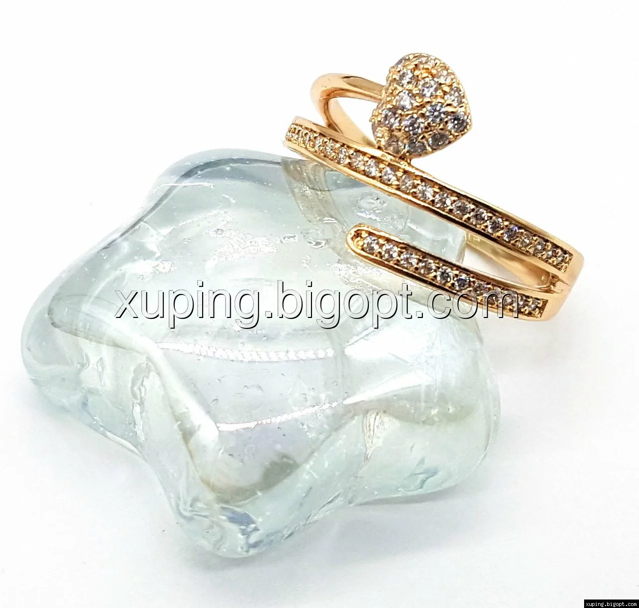 Кольцо Сердце, с россыпью циркония, р.17, р.18,5, позолота