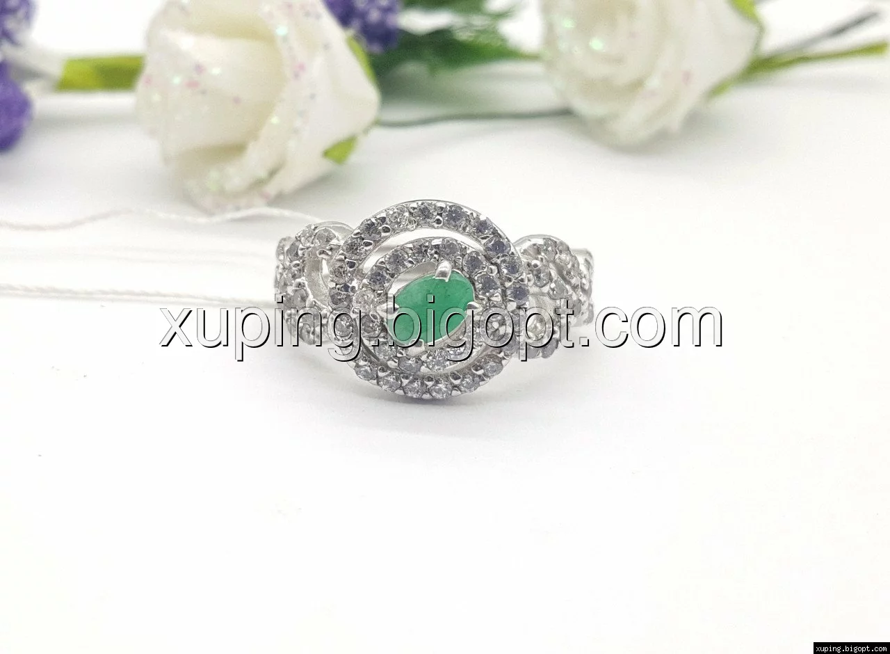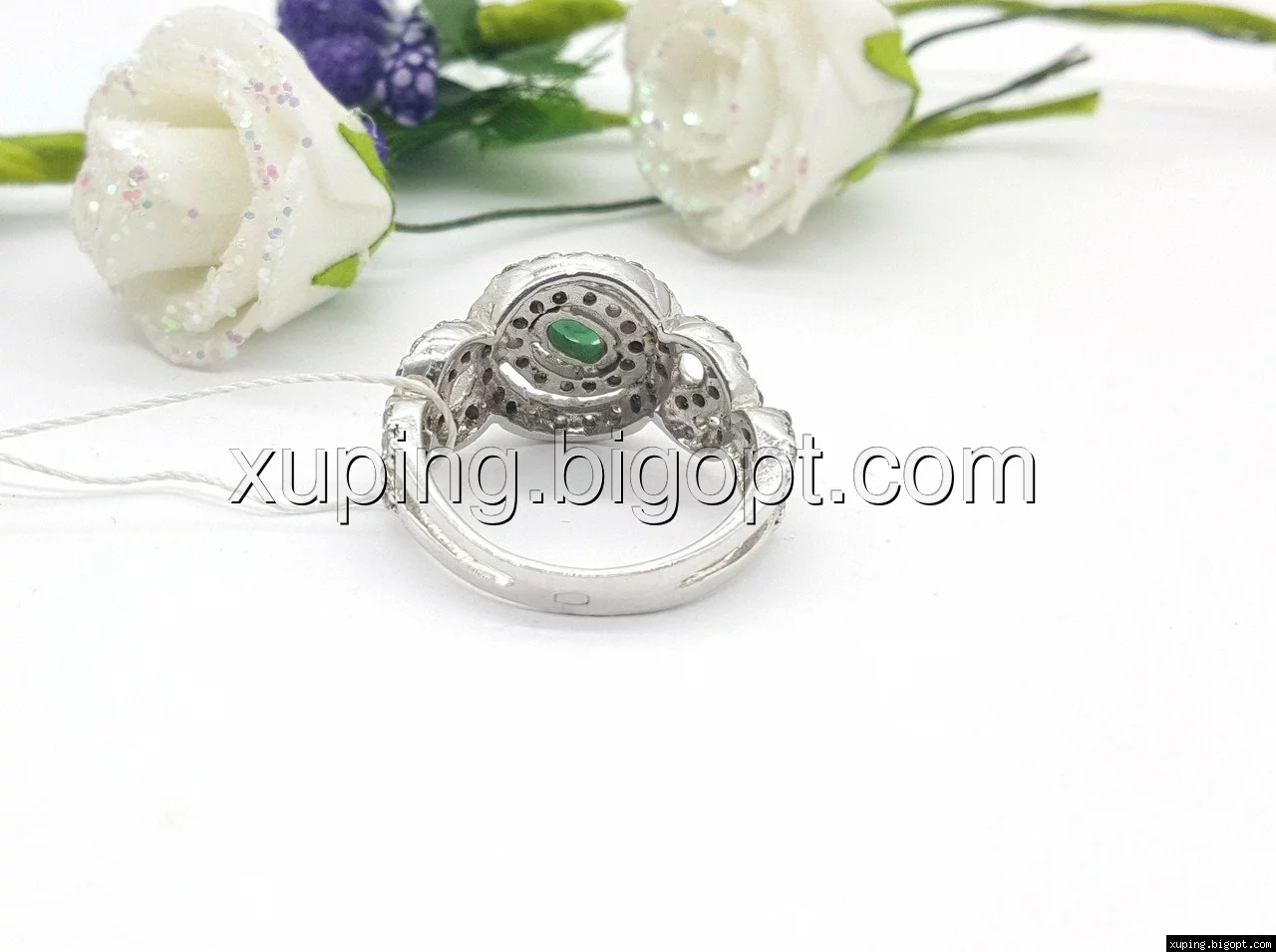 Кольцо серебряное, Россыпь циркония с смарагдом по центре, р.17,5 (4,87 гр.)