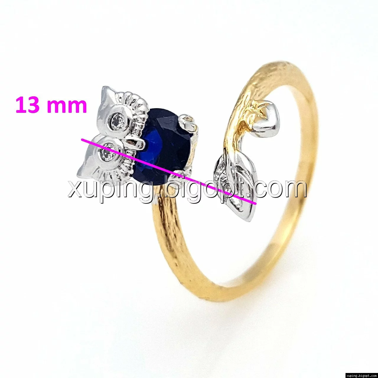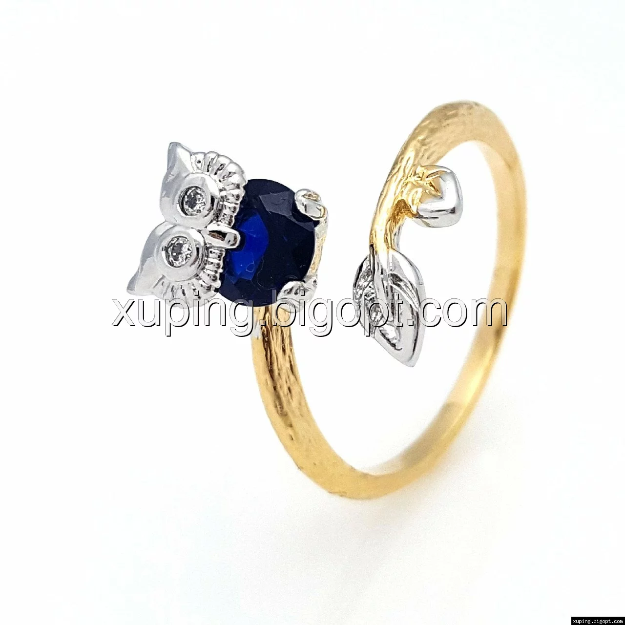 Кольцо Сова, с синим цирконием р.17, р.18,5, р.19, позолота+родий