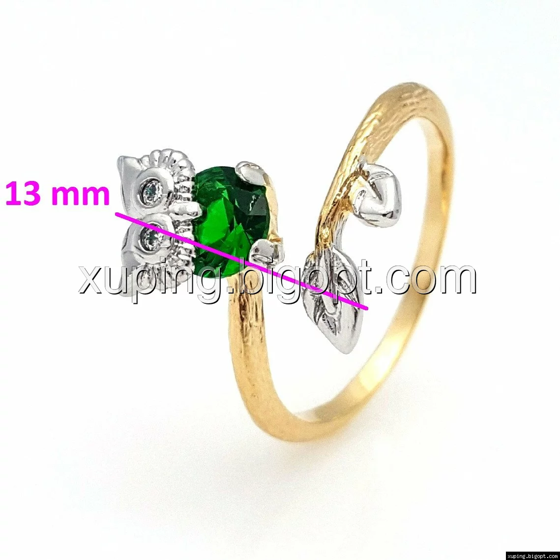 Кольцо Сова, с зеленым цирконием, р.17, р.17,5, р.18,5 р.19, позолота+родий