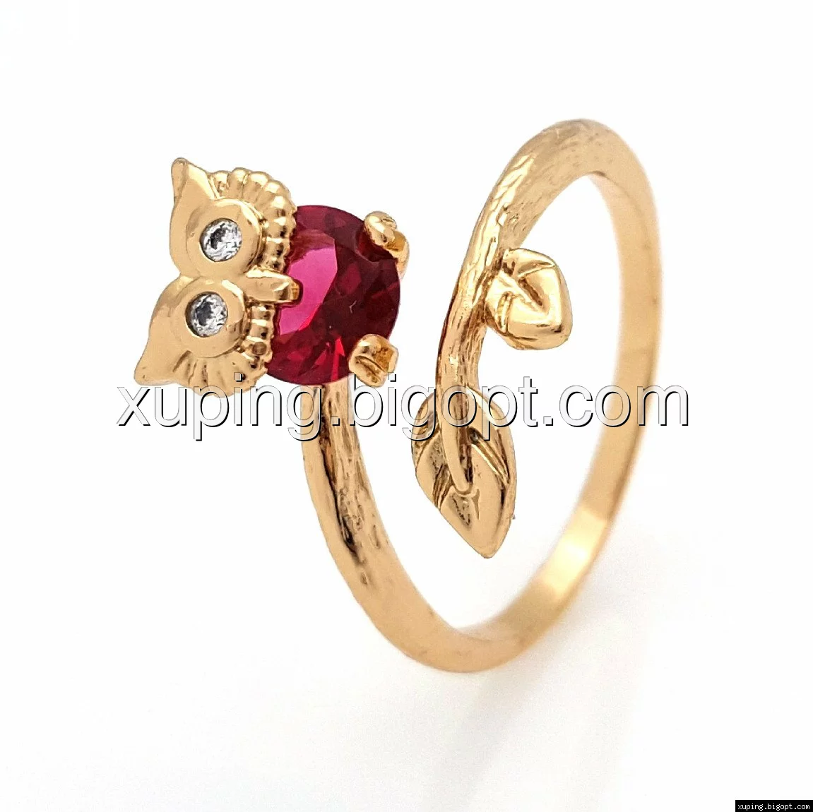 Кольцо Совушка, малиновый животик, вставка цирконий, р.16-16,5, р.18-18,5, р.19-19,5, позолота
