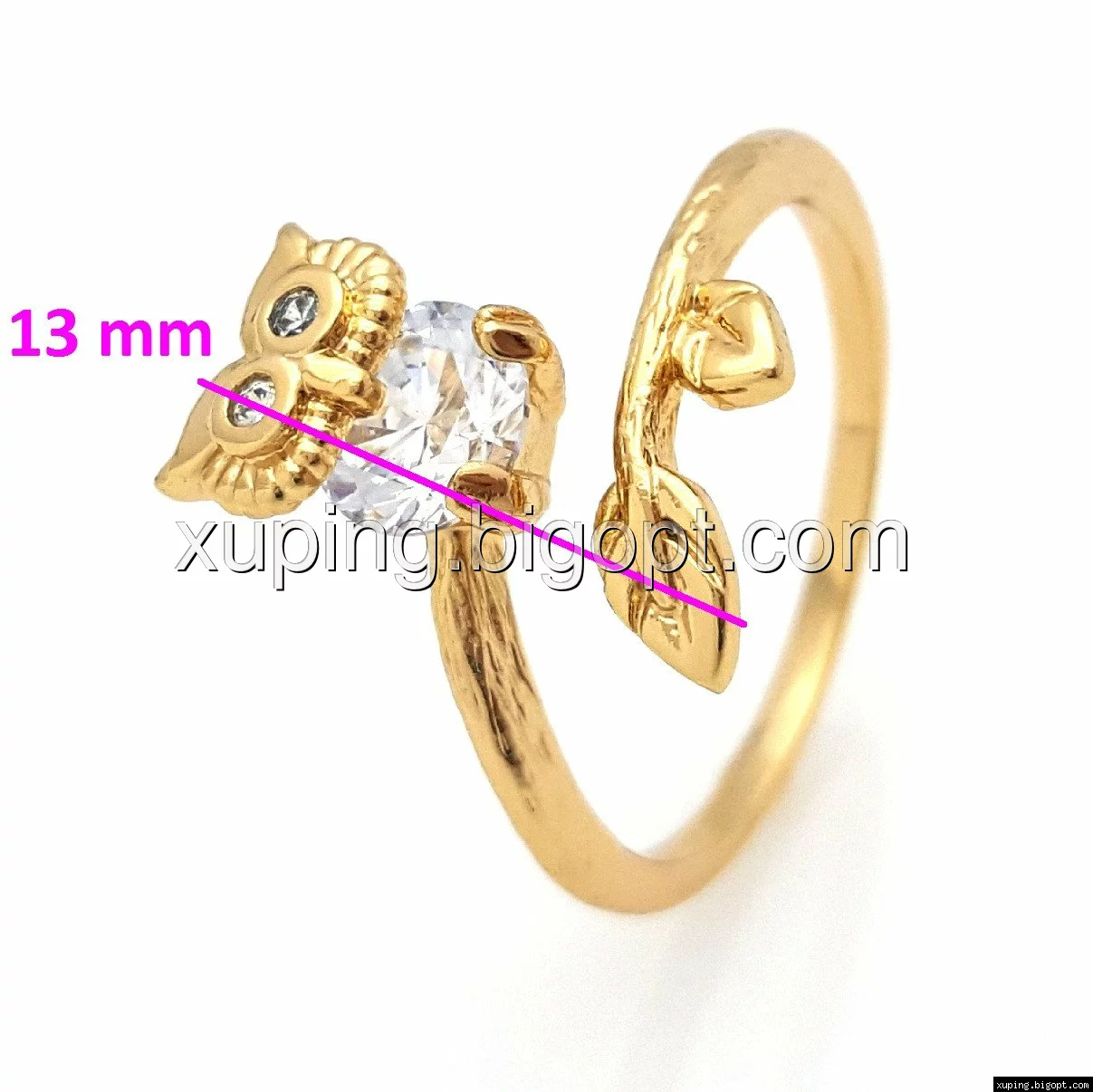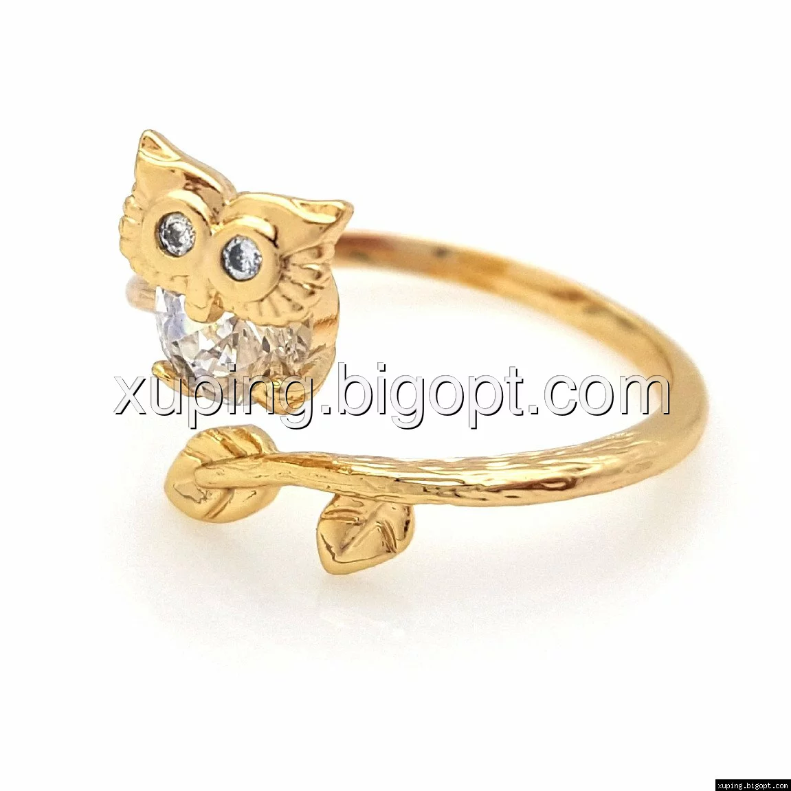 Кольцо Совушка, с граненным цирконием, р.16-16,5, р.18-18,5, р.19,-19,5, позолота Xuping