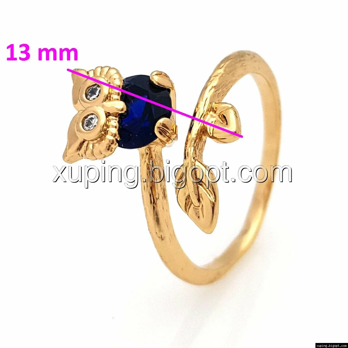 Кольцо Совушка, с синим цирконием, р.16-16,5, р.18-18,5, р.19-19,5, позолота Xuping