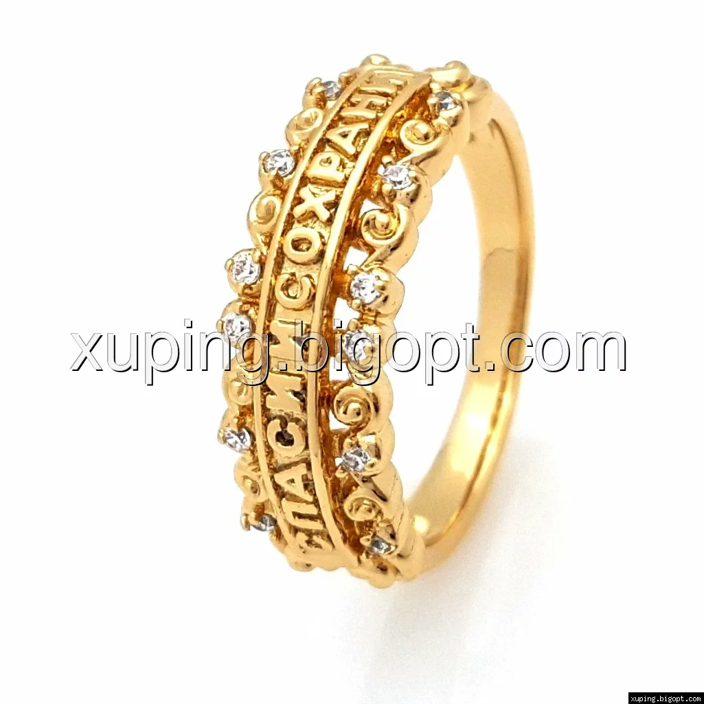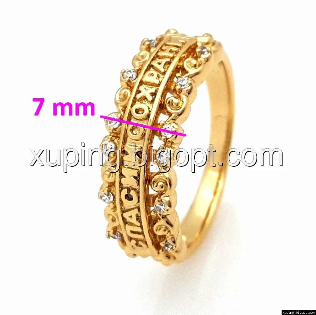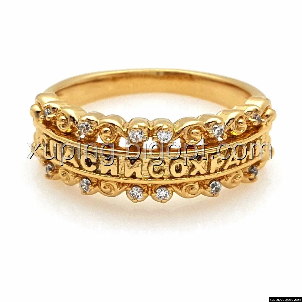 Кольцо "Спаси и Сохрани" с россыпью камней, р.17, р.18, р.18,5, р.19,5, позолота Xuping