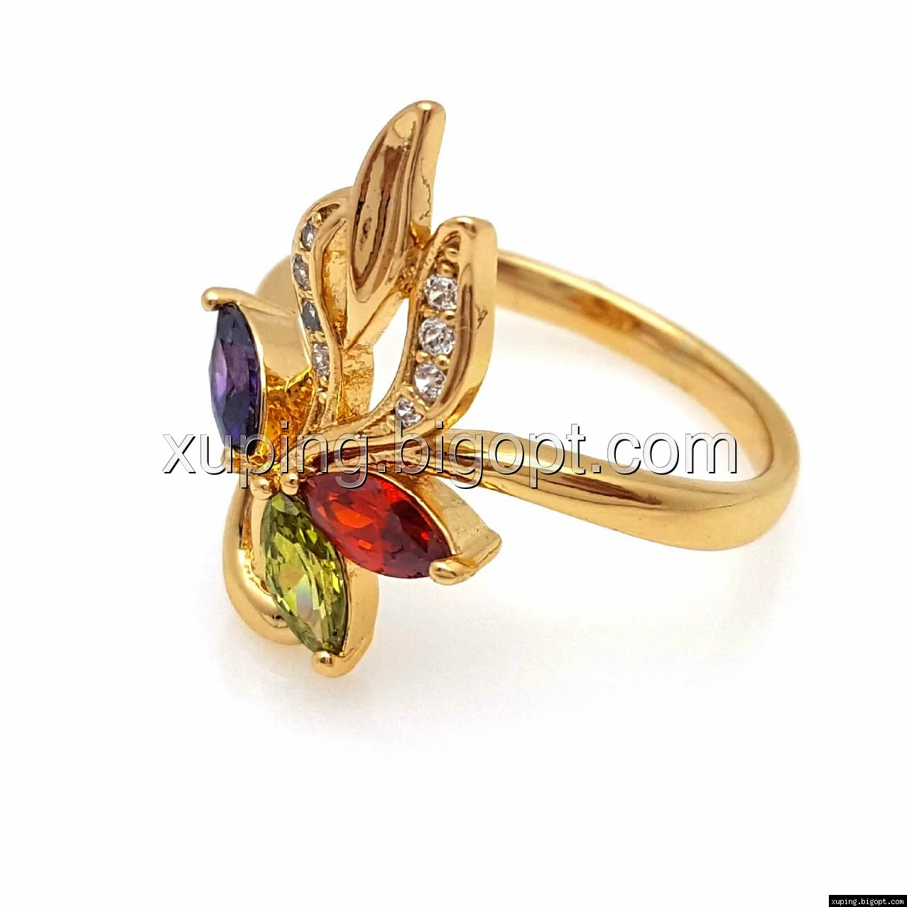 Кольцо Стебелек, с разноцветным цирконием, р.17, р.18, р.18,5, позолота Xuping