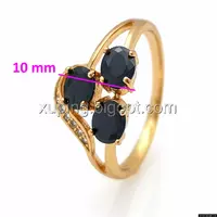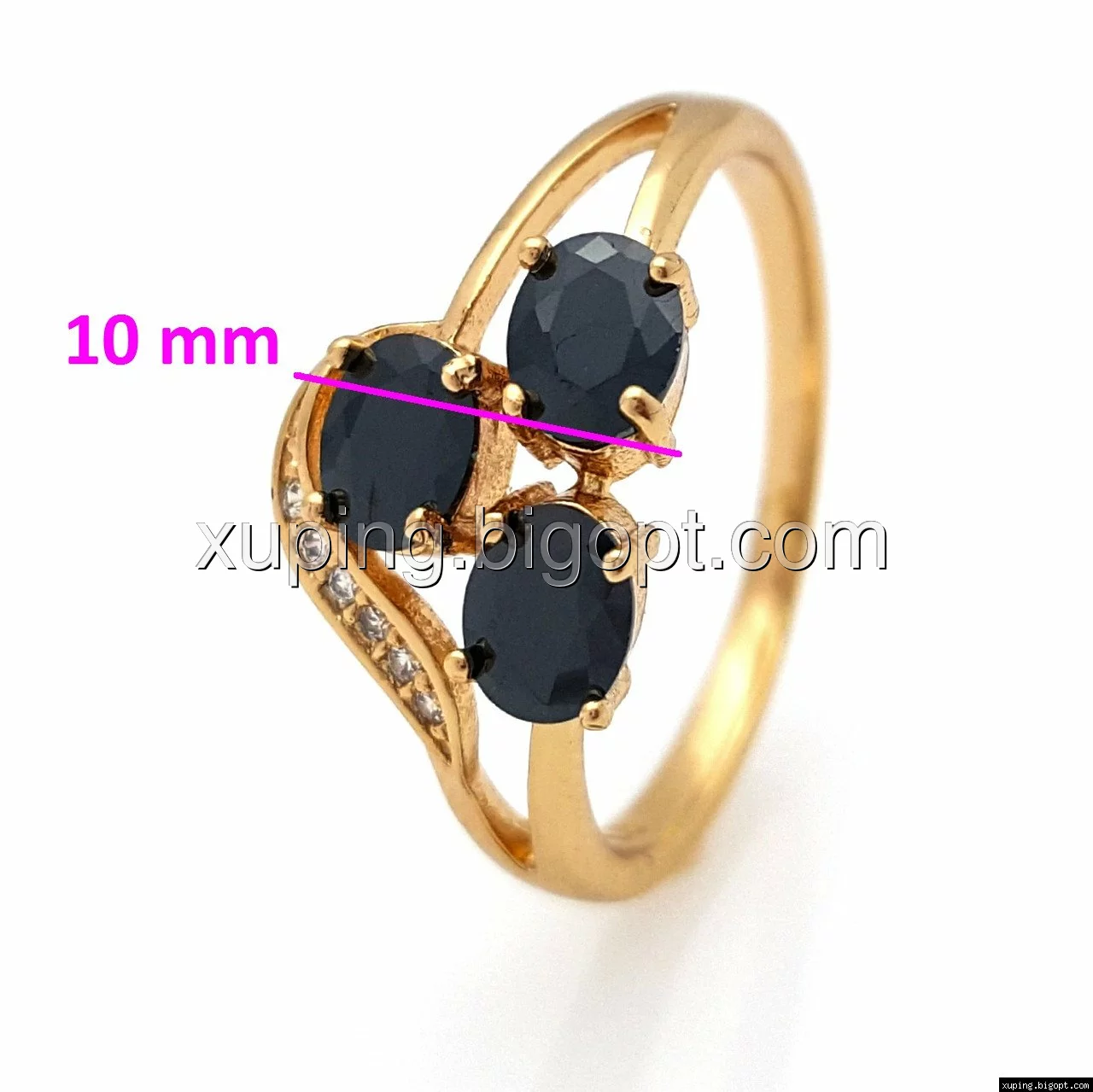 Кольцо Три черных циркония, р.17, р.18, р.18,5, р.19,5, позолота Xuping
