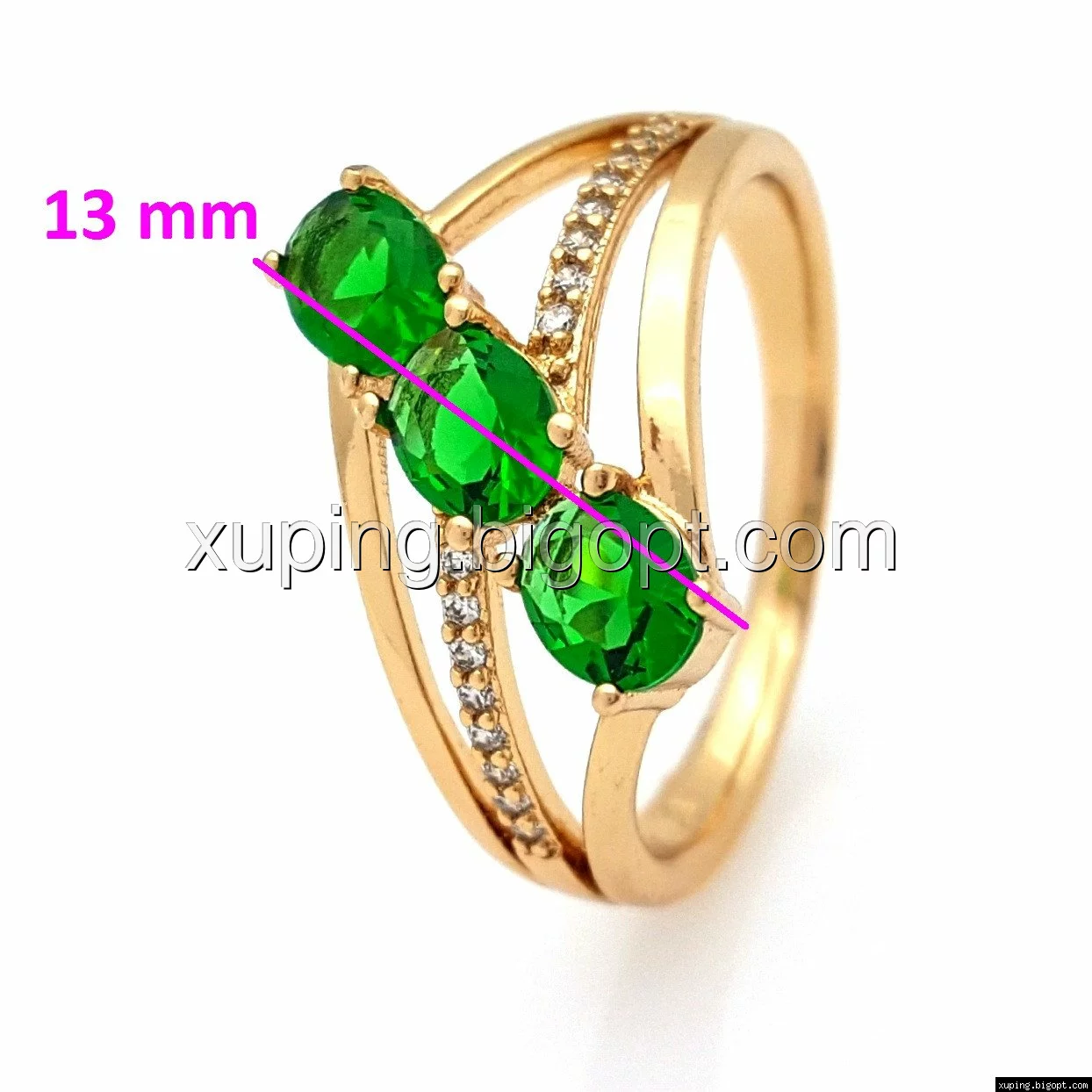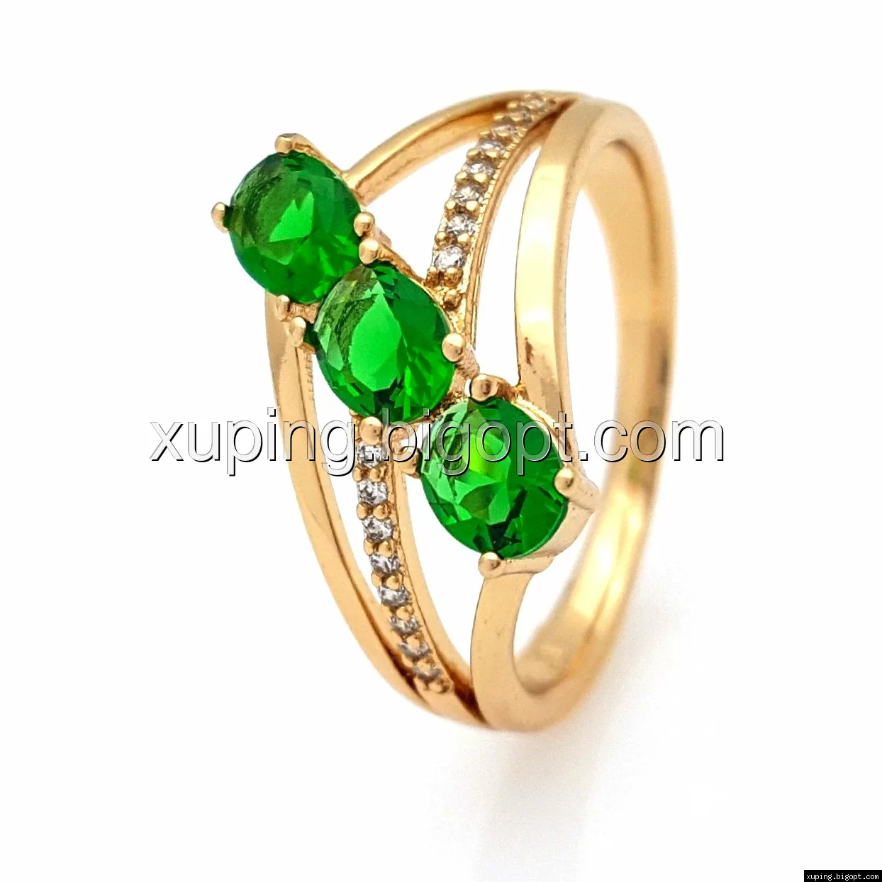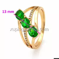 Кольцо Три Зеленых циркония, р.17, р.18, р.18,5, р.19,5, позолота Xuping