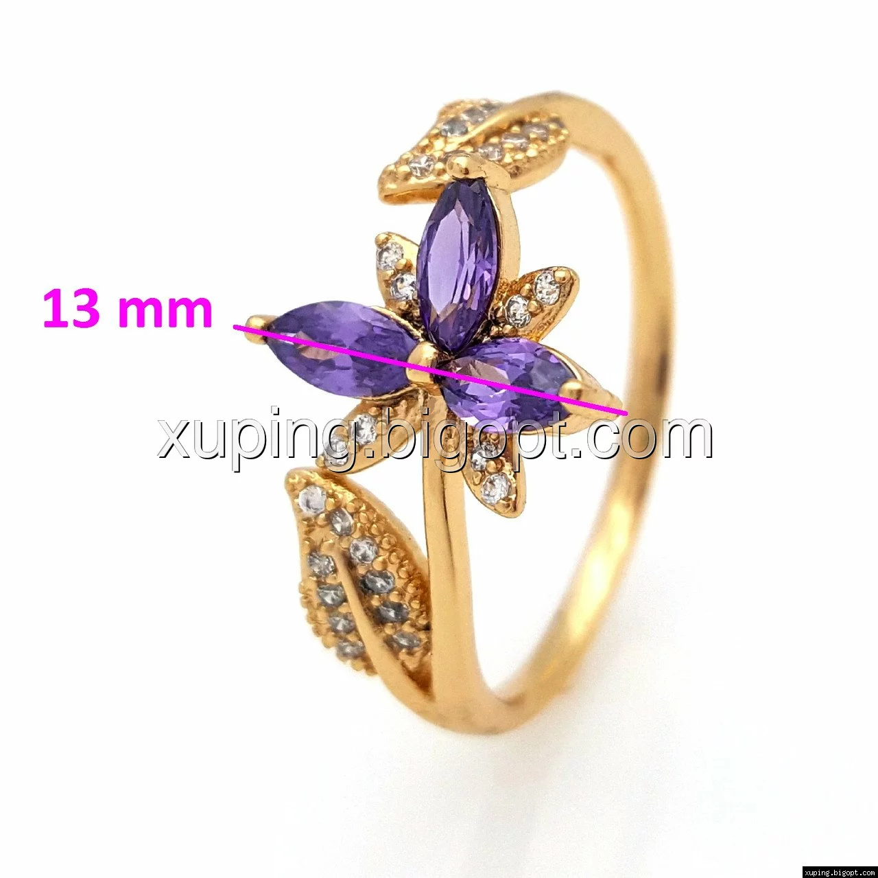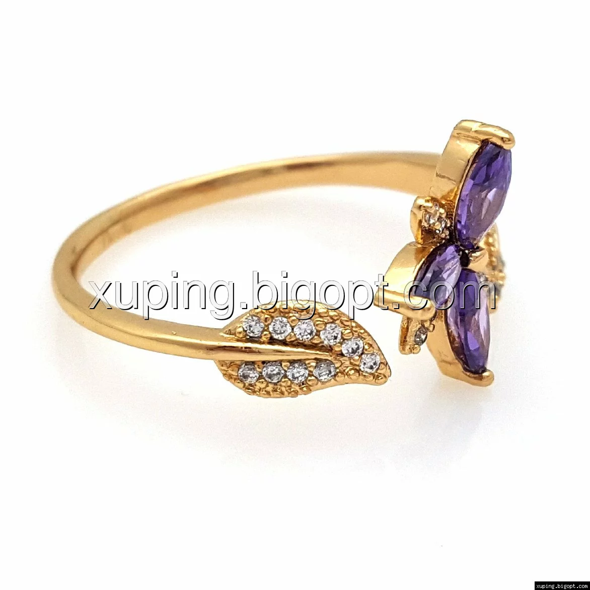 Кольцо Трилистник с фиолетовым цирконием, р.16,5-17,5, р.19-20, позолота Xuping