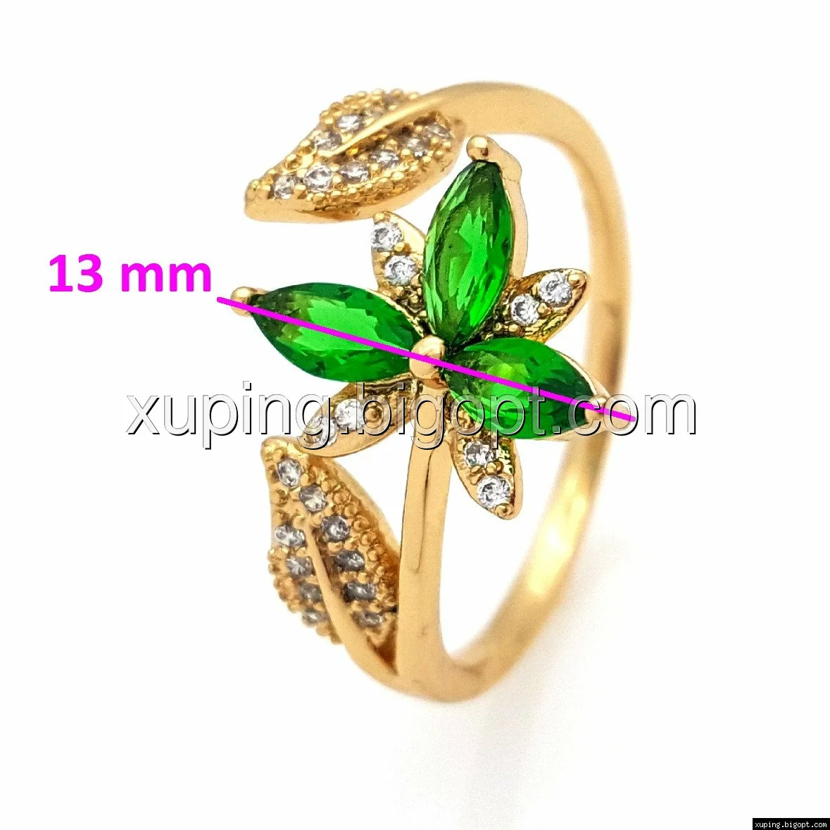 Кольцо Трилистник, с зеленым цирконием, р.16,5-17, р.18,5-19, позолота Xuping