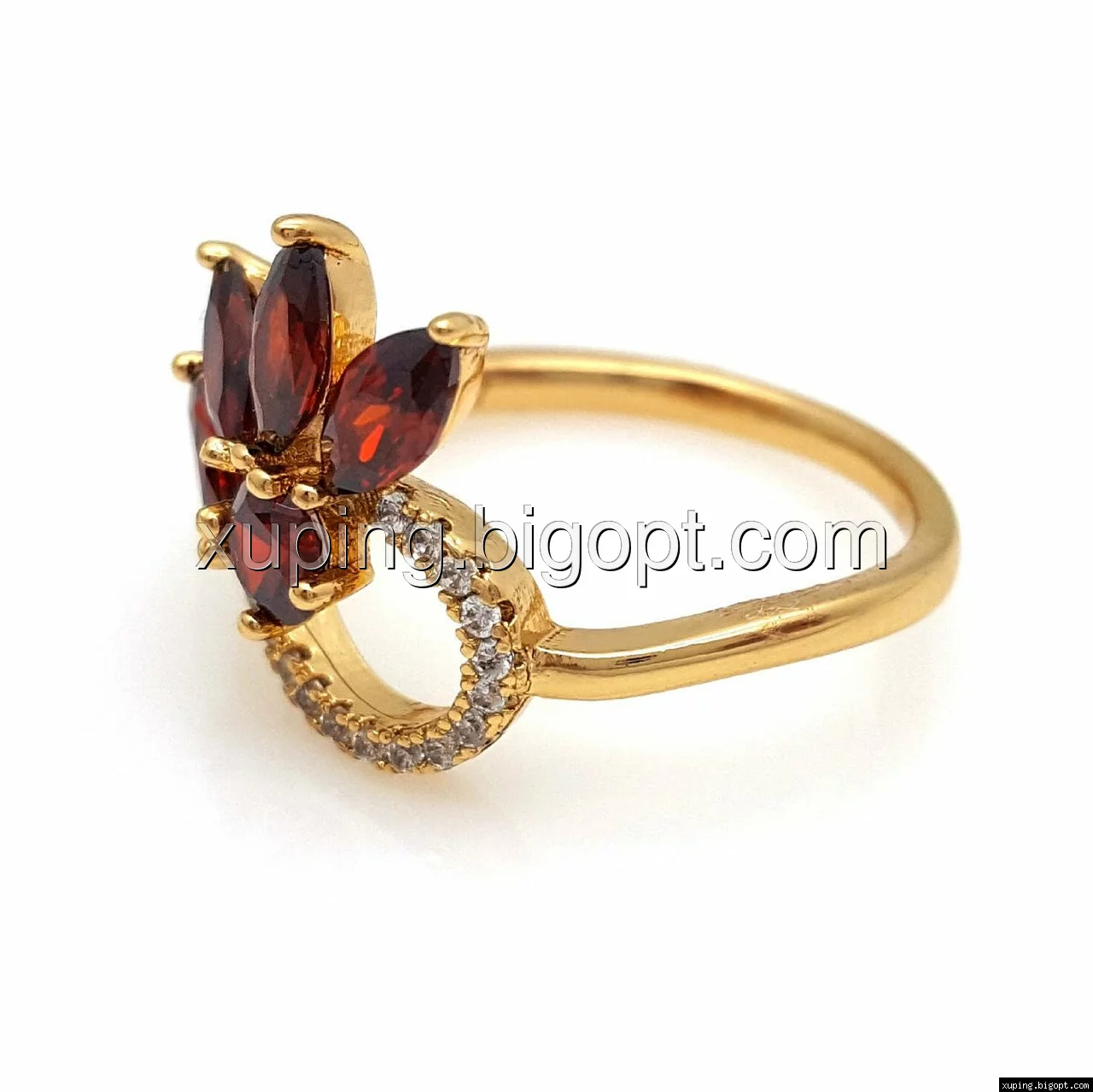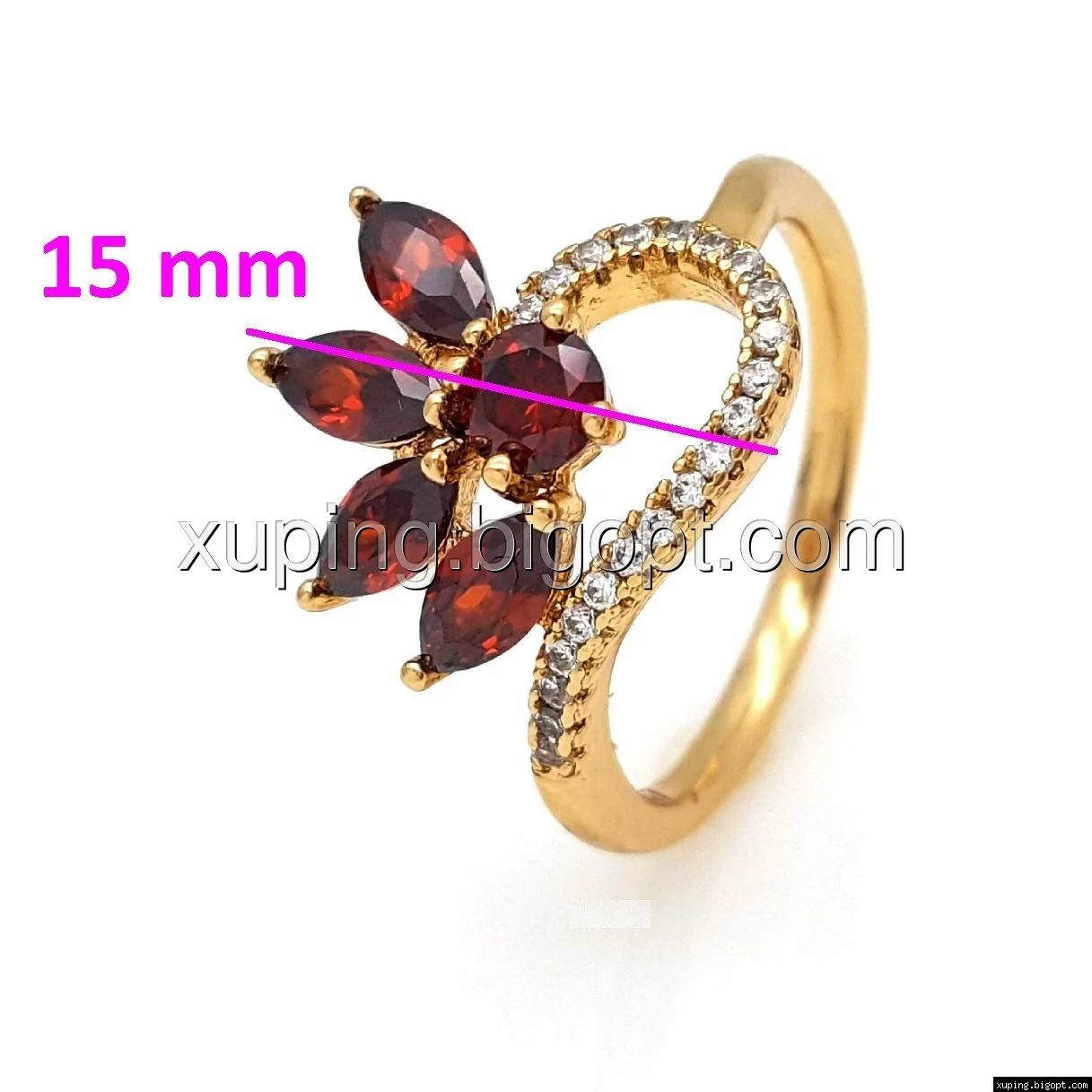 Кольцо Цветок с красным цирконием, 17,5 р.18, р.18,5, позолота Xuping