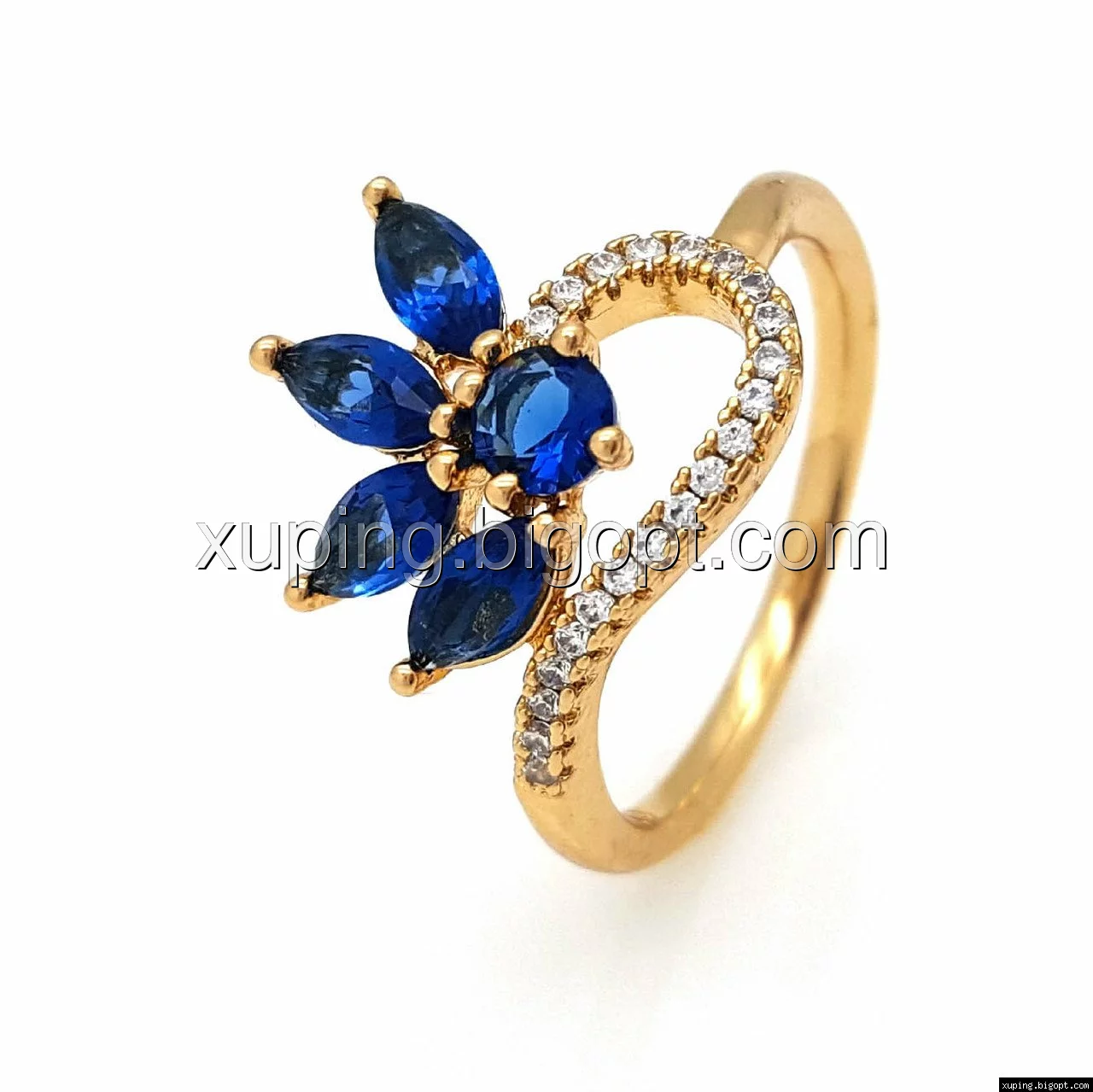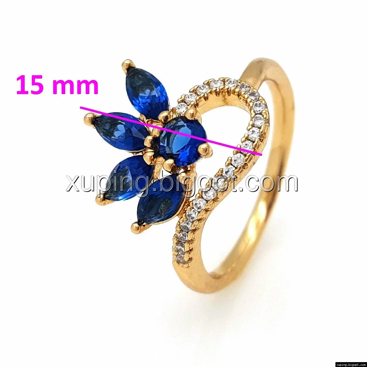 Кольцо Цветок с синим цирконием, р.17, р.18, р.19, р.19,5, позолота