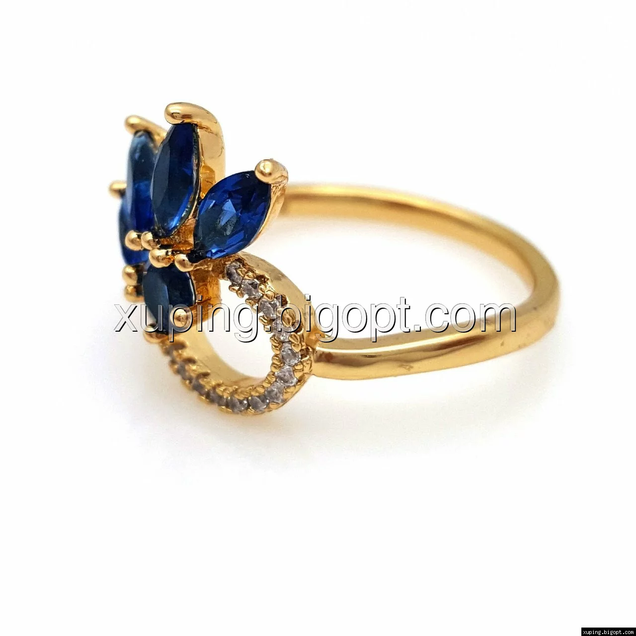 Кольцо Цветок с синим цирконием, р.17, р.18, р.19, р.19,5, позолота