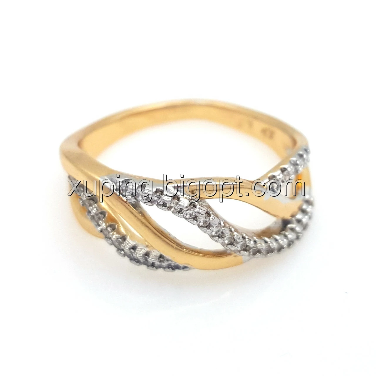 Кольцо Волнистое, с цирконием, р.18 позолота+родий