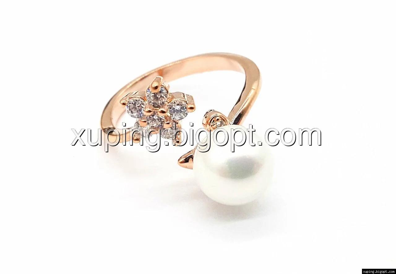 Кольцо Жемчужина с Цветком, инкрустация циркония, р.17, позолота