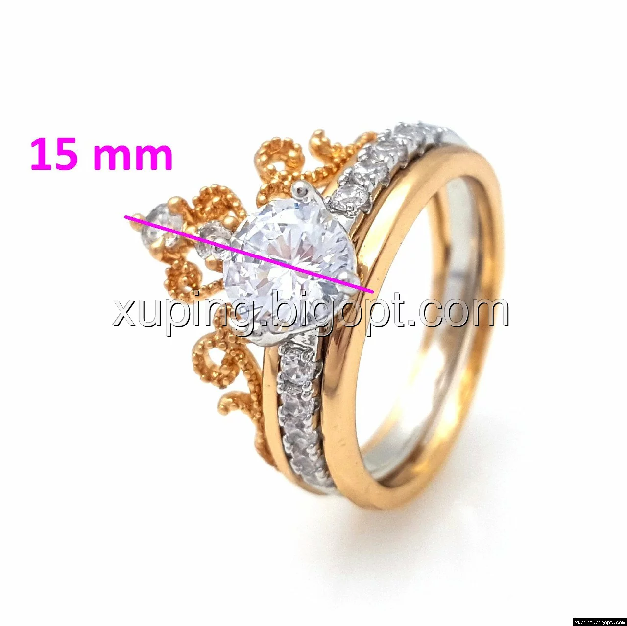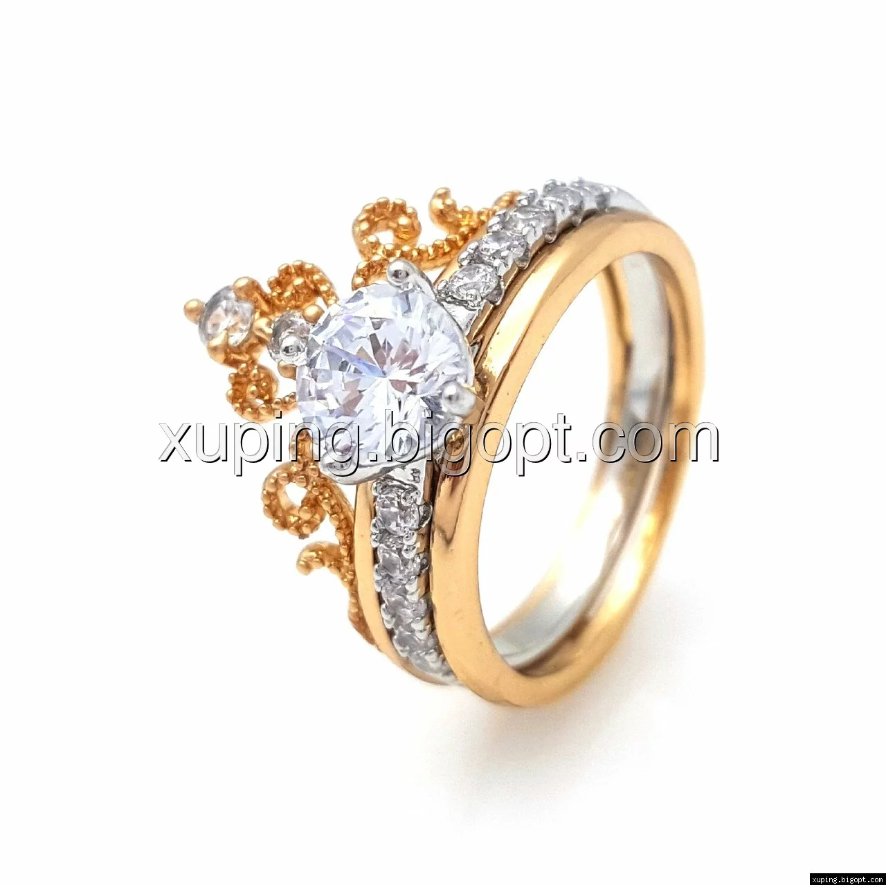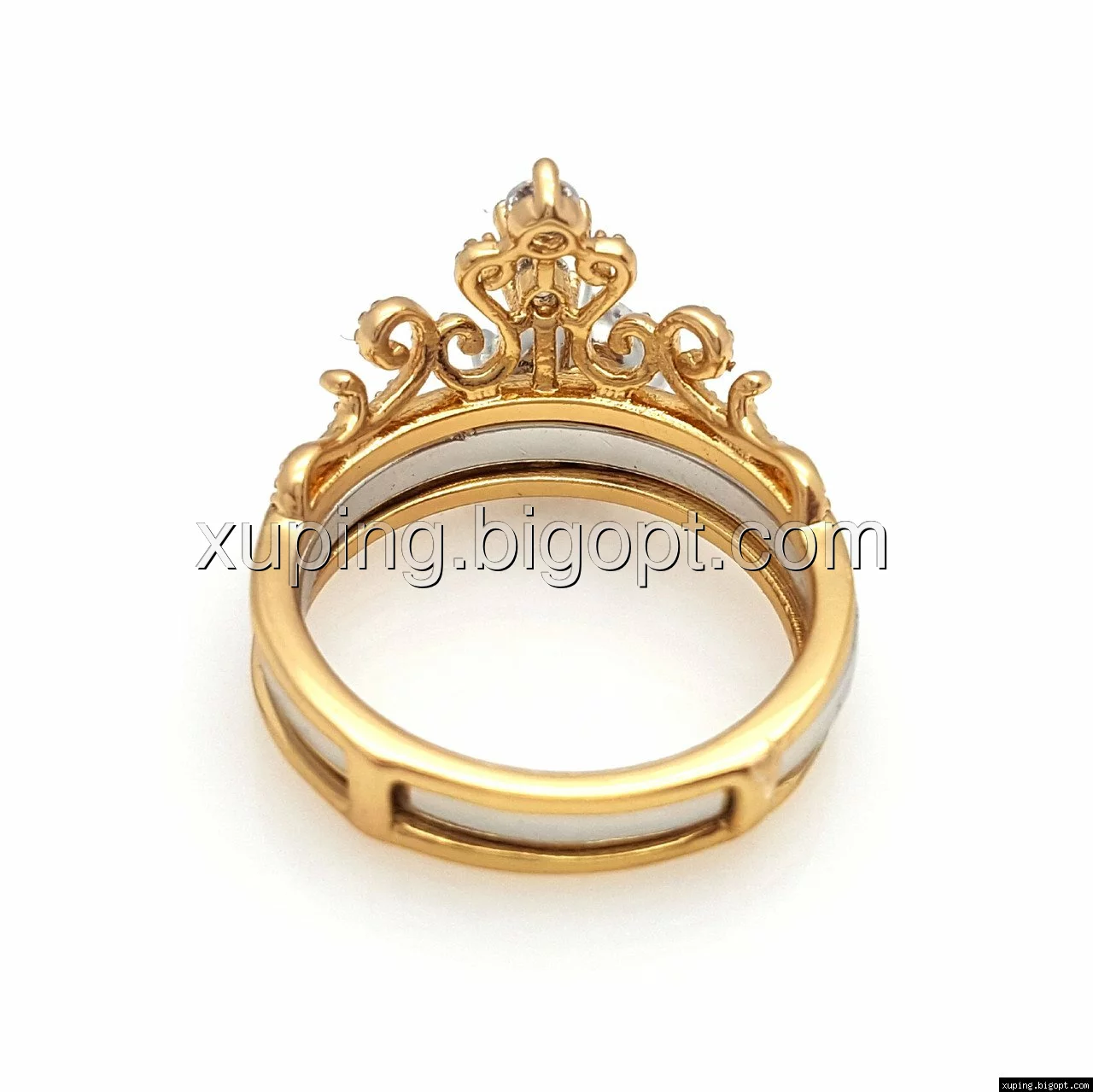 Кольцо 2в1, Ажурная Корона, с цирконием, р.17, р.17,5, р.18,5, позолота+ родий