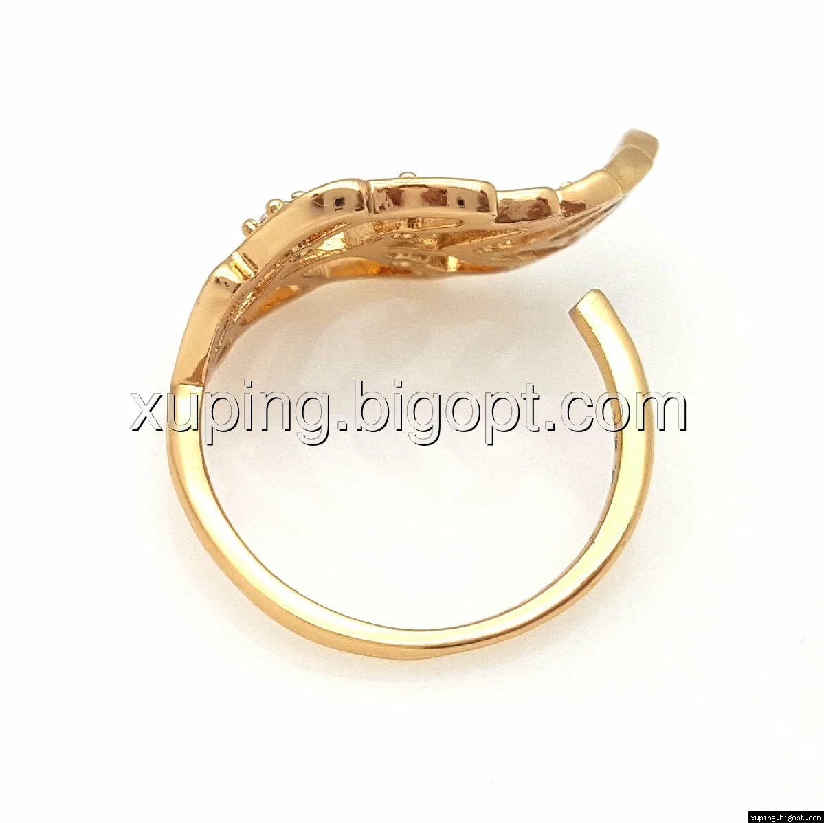 Кольцо Ажурный Листик, с камнями, р.16-19, позолота