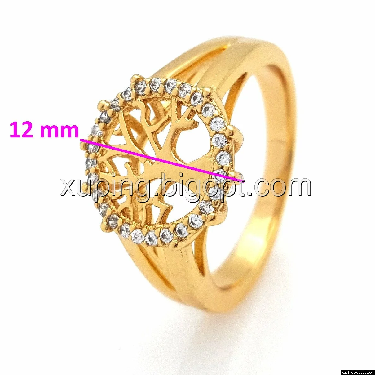 Кольцо Ажурное Дерево, с камнями, р.16, р.17, р.18, р.18,5, позолота