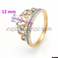 Кольцо Ажурная Корона, с цирконием, р. 17, р.18, позолота+родий