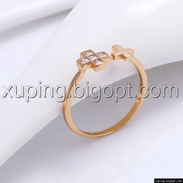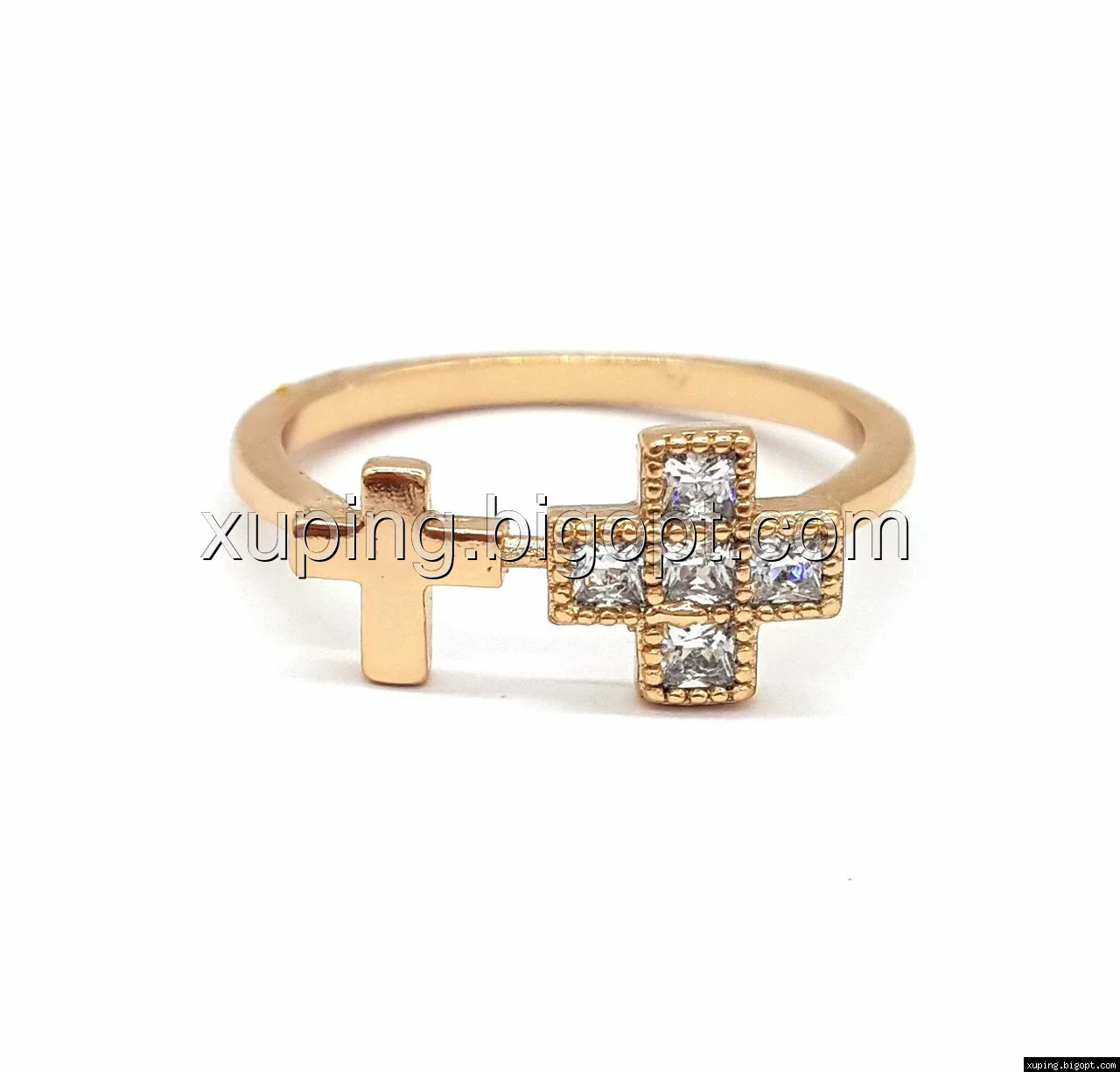 Кольцо два Крестика с цирконием, позолота, р.16,5, р.17,5, р.18, р.18,5