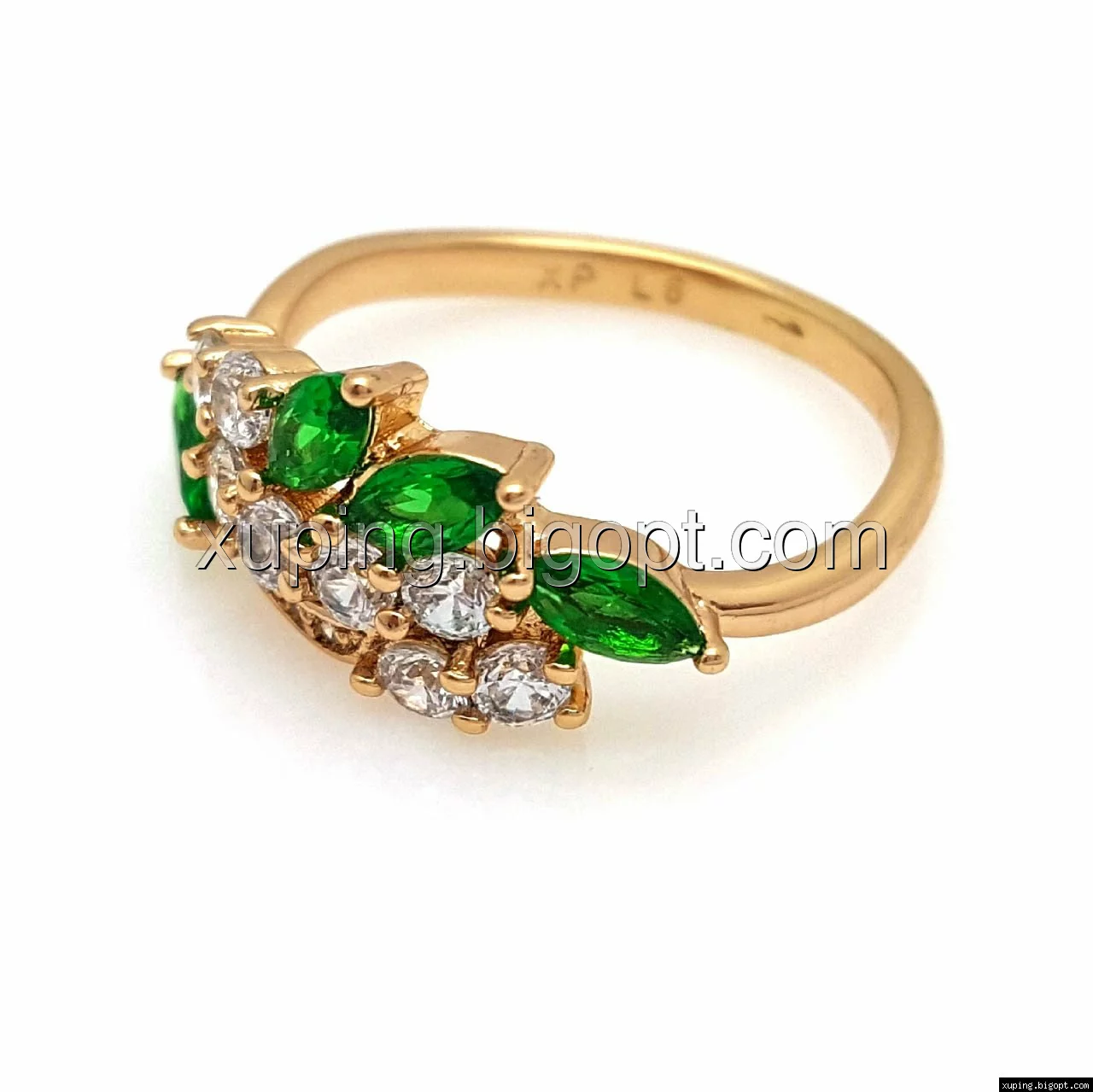 Кольцо Веточка с зеленым миндальным цирконием, р.16,5, позолота Xuping