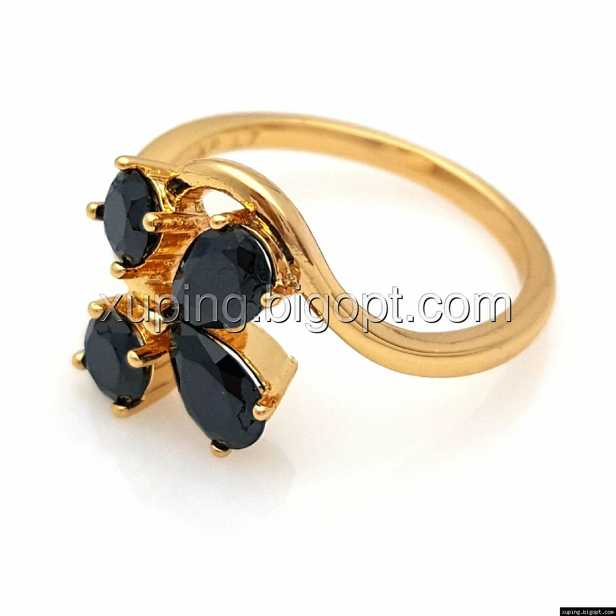 Кольцо Веточка с черным цирконием, р.17, р.18, р.18,5, р.19,5, позолота Xuping