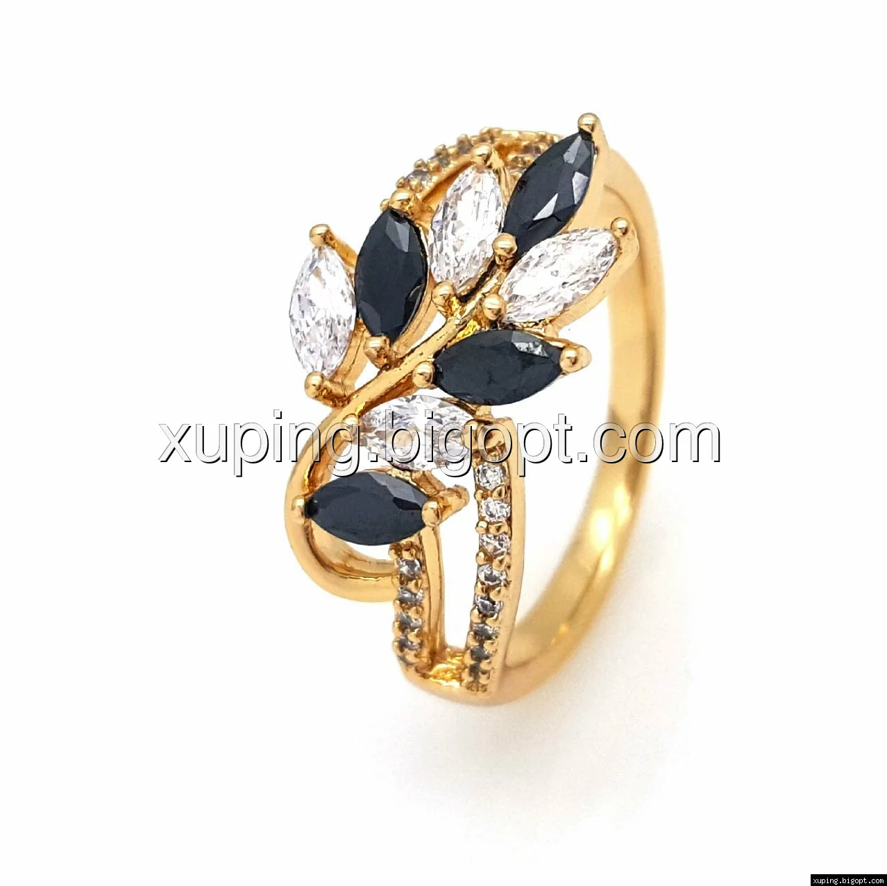 Кольцо Веточка с черно-белым цирконием, р.18,5, позолота Xuping