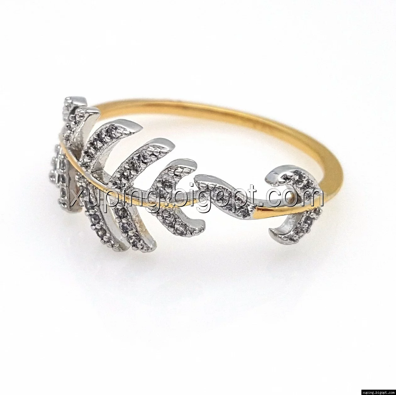 Кольцо Веточка, с цирконием, р.17, р.18, р.18,5, р.19,5, позолота+родий