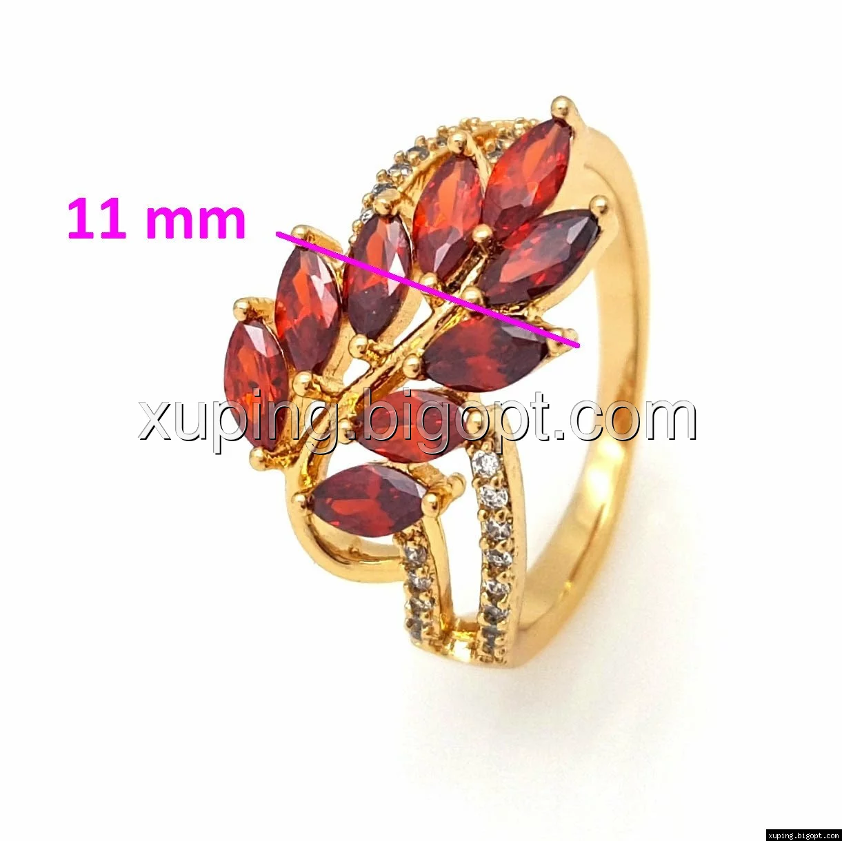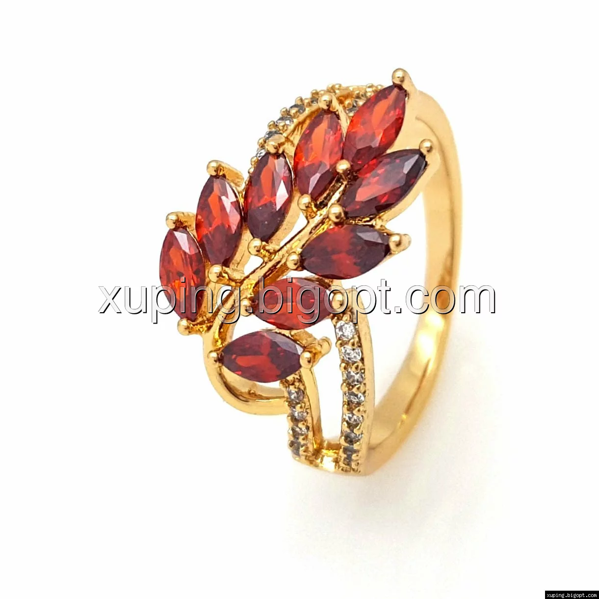 Кольцо Веточка с красным цирконием, р. 17, р.17,5, р.18, позолота Xuping