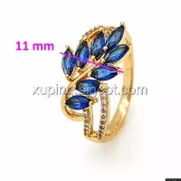 Кольцо Веточка с синим цирконием, р.18, позолота Xuping