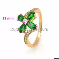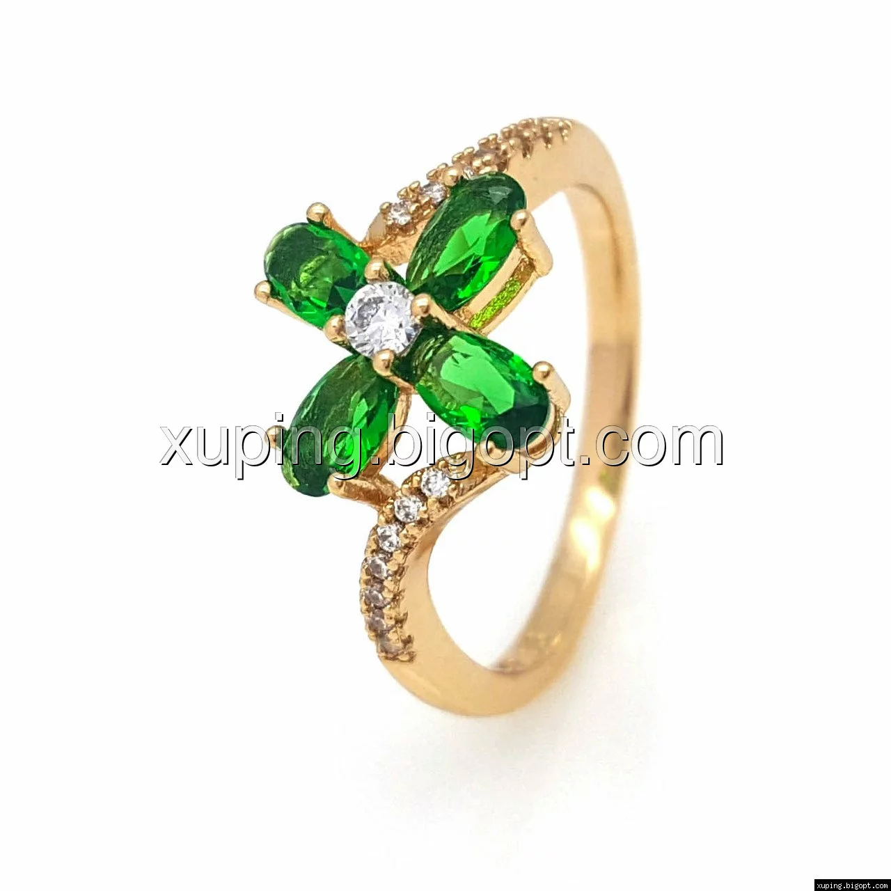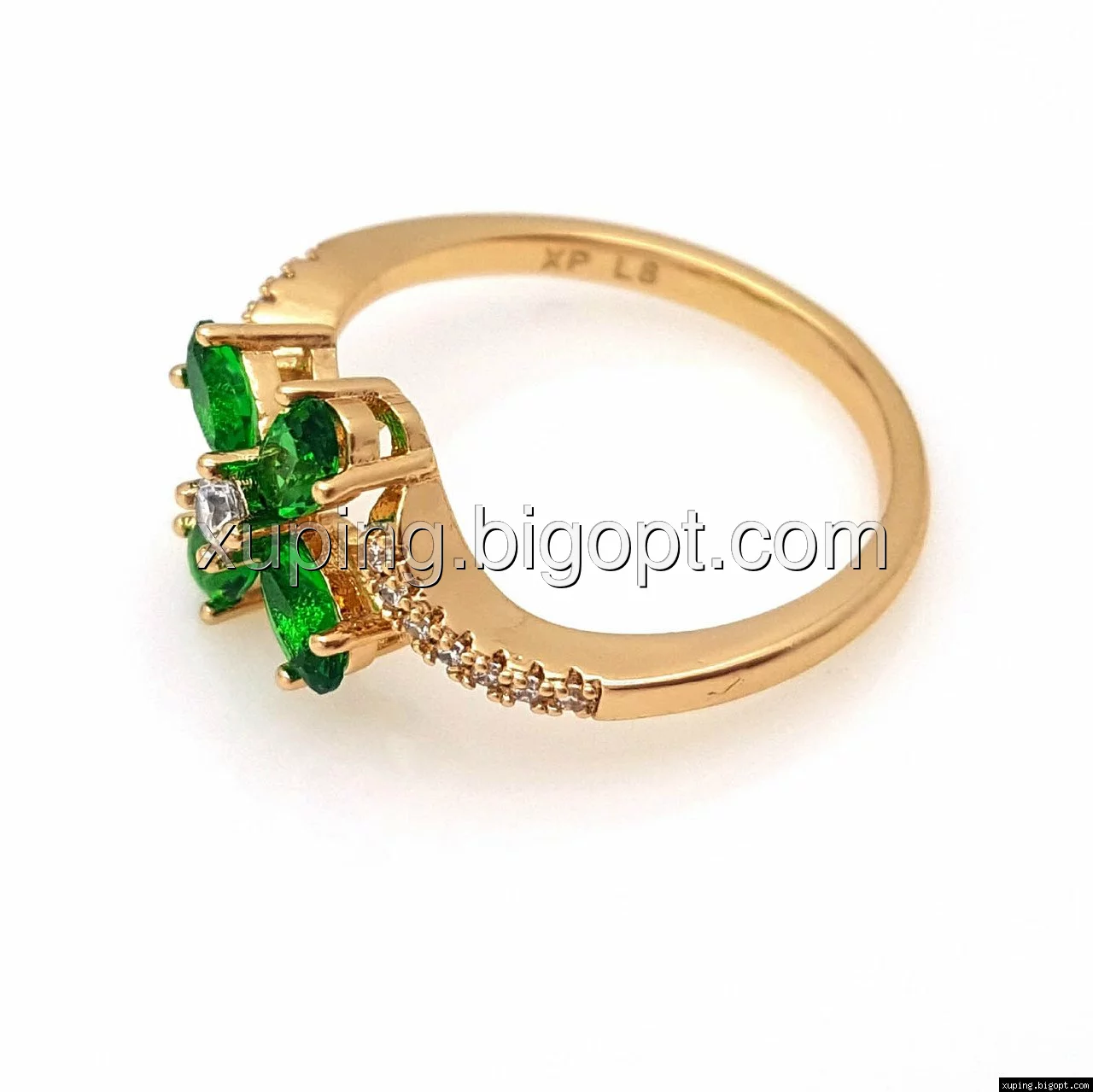 Кольцо Четырехлистник с зеленым цирконием, р.17, р.18, р.18,5, р.19,5,позолота Xuping