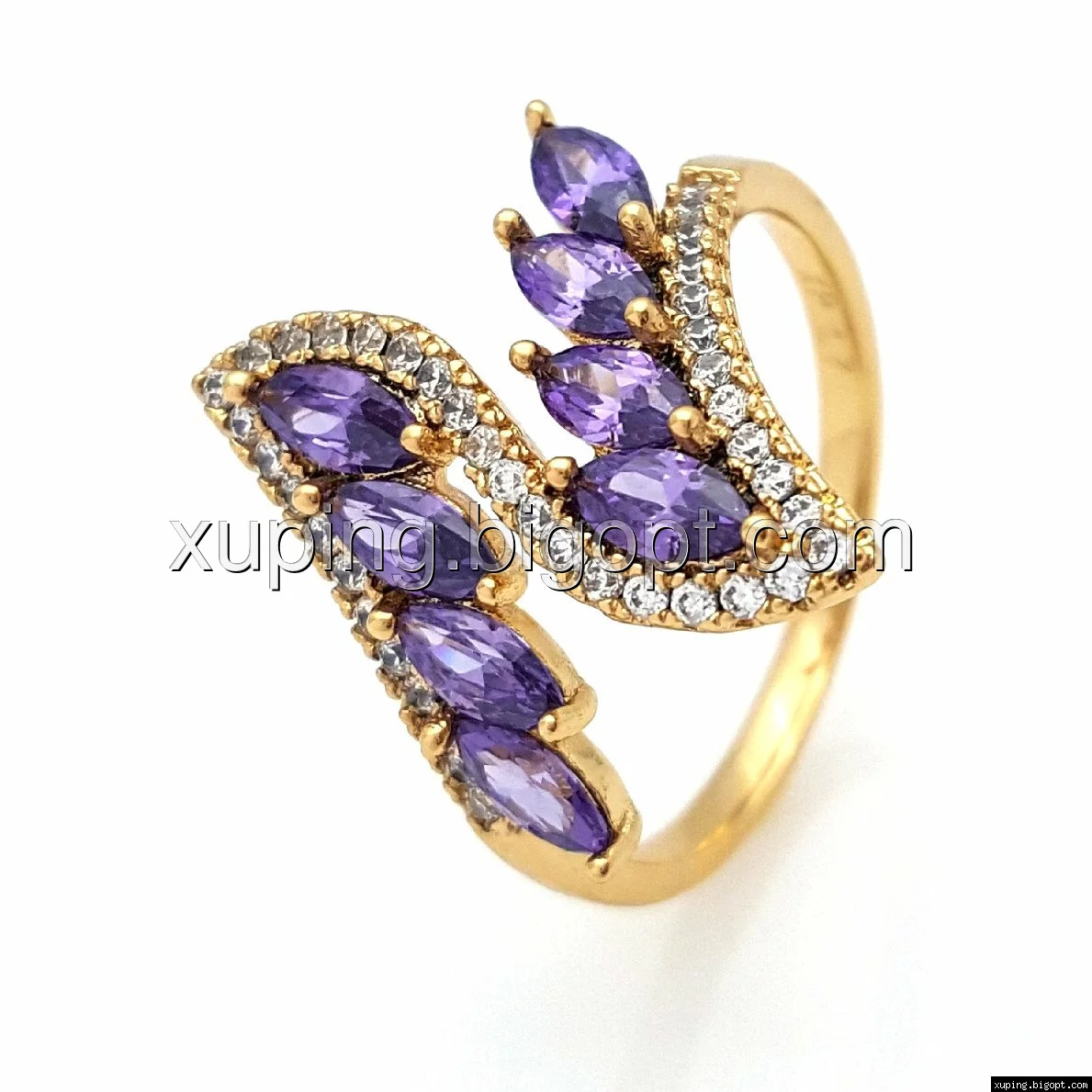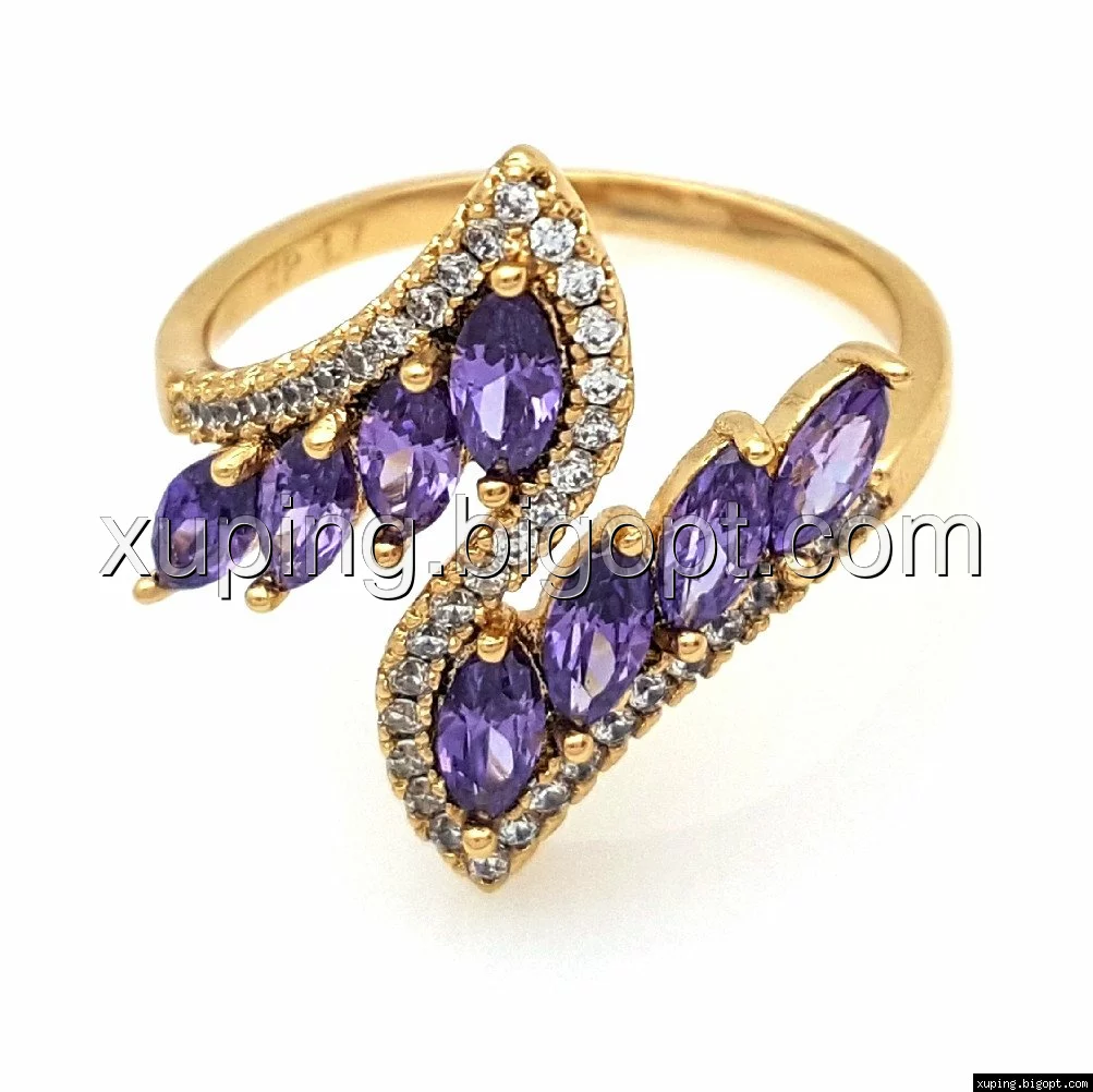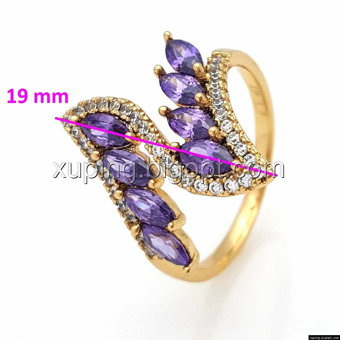Кольцо Зигзаг с фиолетовым цирконием, р.17, р.18, р.18,5, р.19,5 позолота Xuping