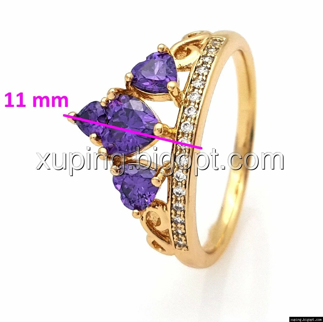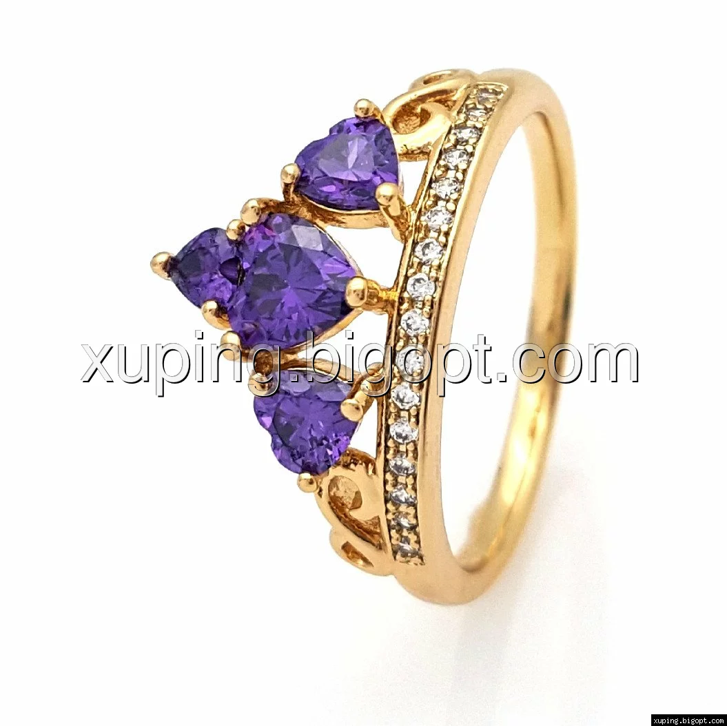 Кольцо Корона с фиолетовым цирконием, р.17, р.18, р.18,5, 19,5, р.20,5, позолота