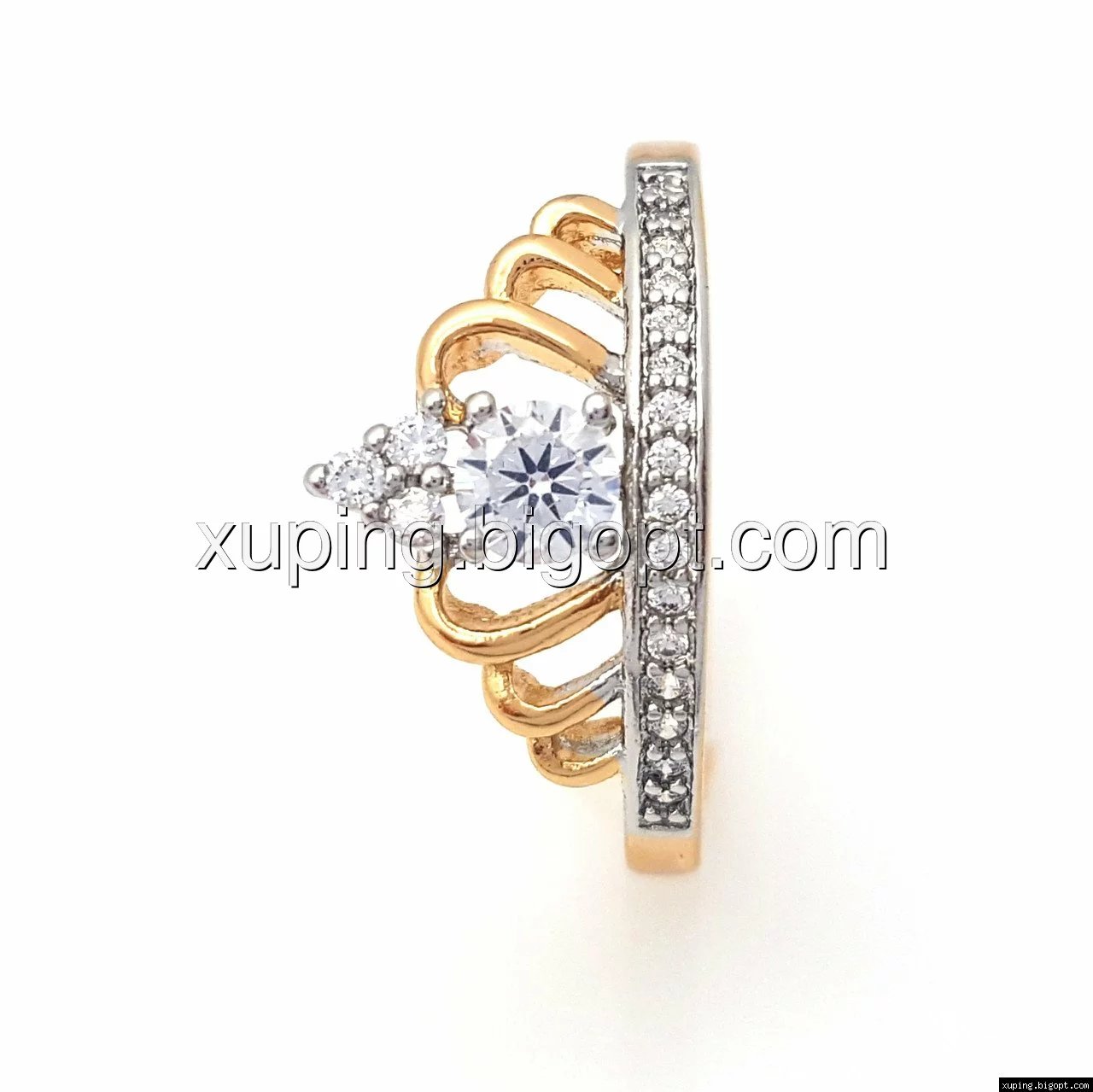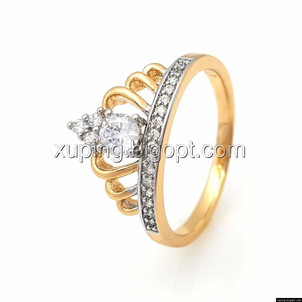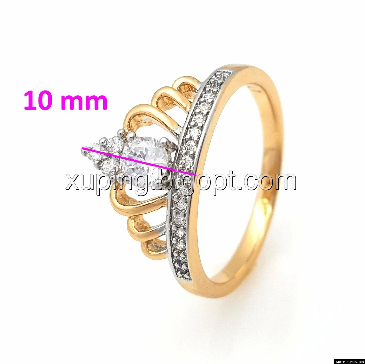 Кольцо Корона с камнями, р.17, р.19, р.19,5, позолота+родий