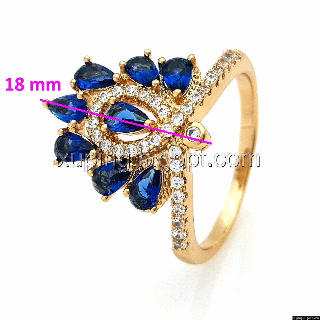 Кольцо Корона с синими камнями, р.18, р.19, позолота Xuping