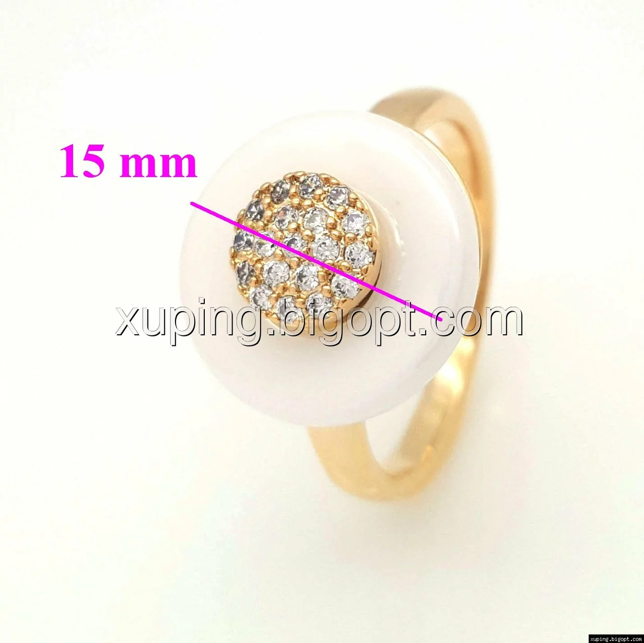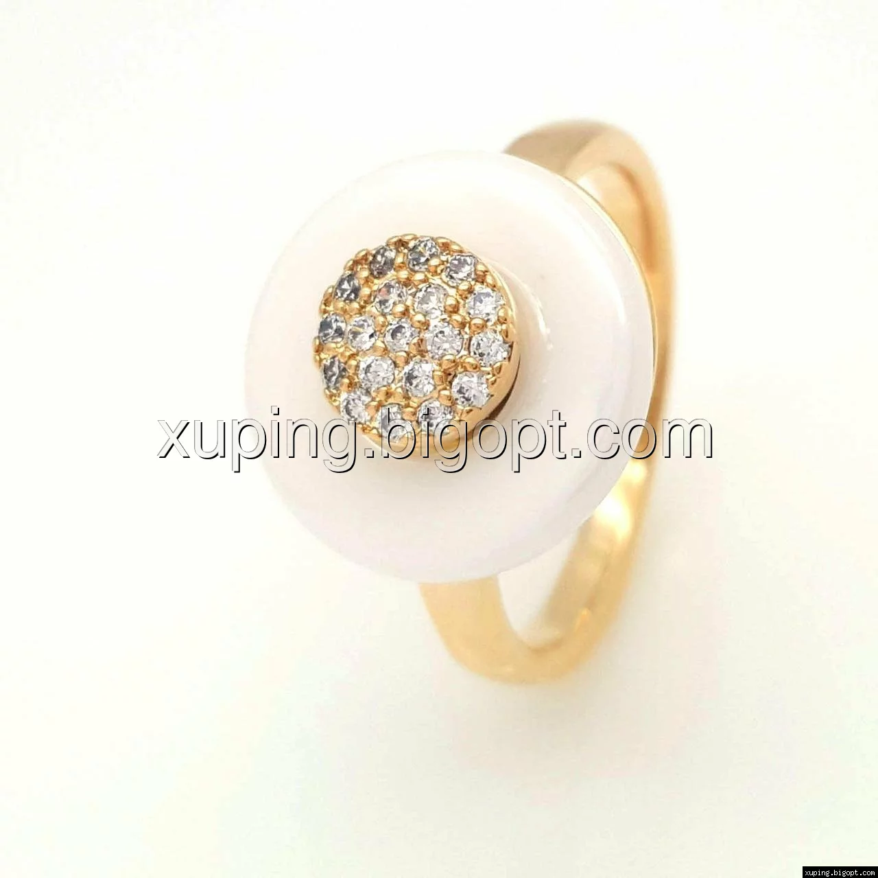 Кольцо Круг, Белая керамика по центру с цирконием, р.17, р.18, позолота Xuping