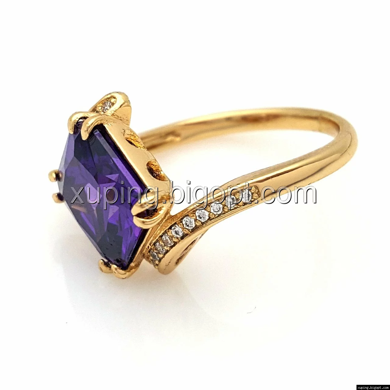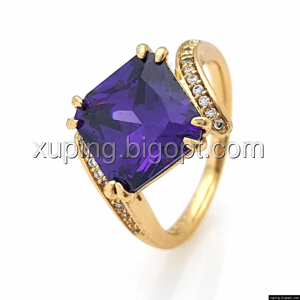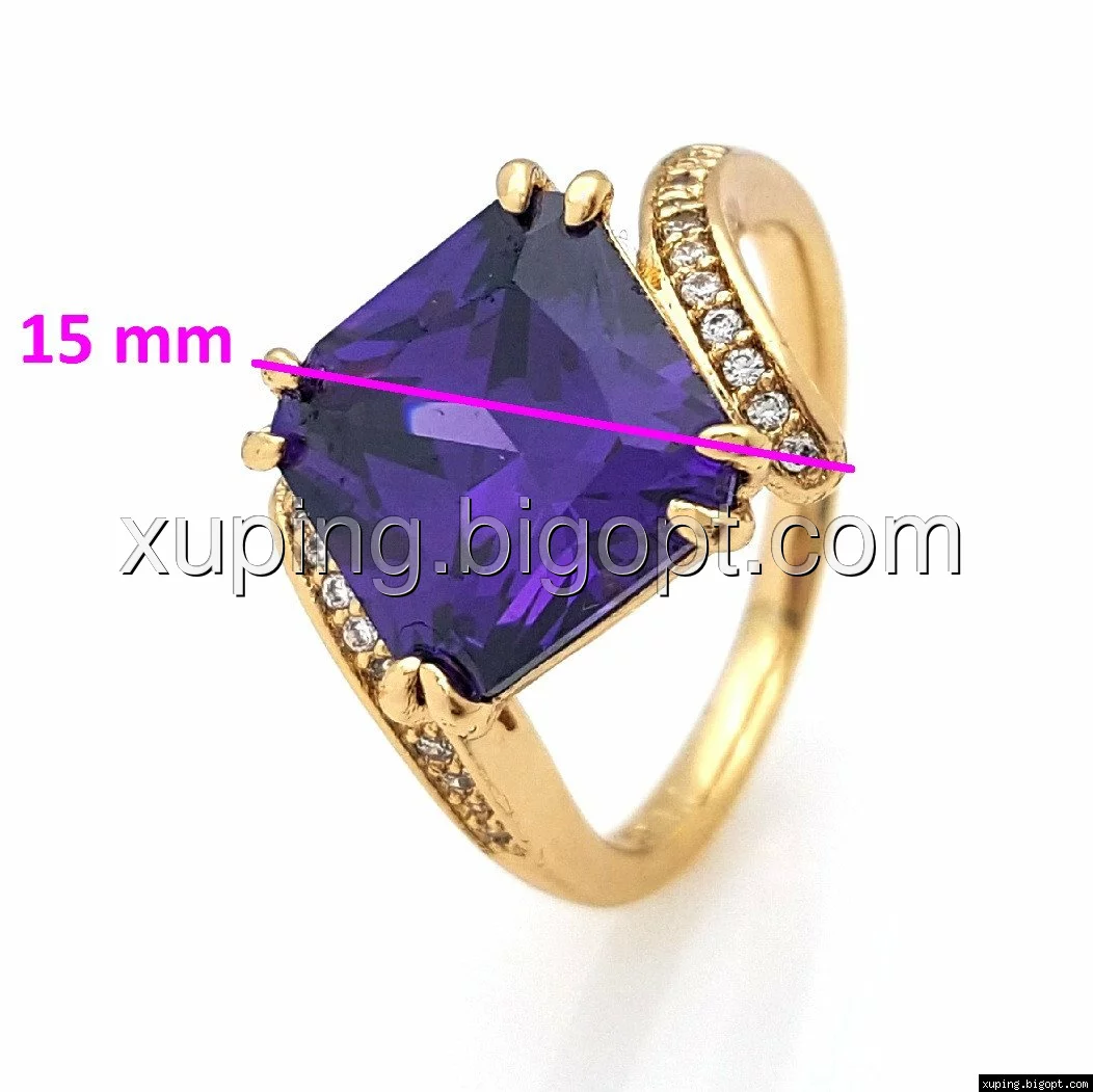 Кольцо Квадрат, с фиолетовым цирконием, р.17, р.18, р.19, р.19,5, позолота Xuping