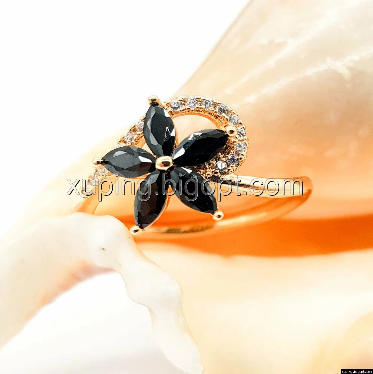 Кольцо месплав 741332, Цветок, черный цирконий, р.17, р.18, р.18,5, позолота