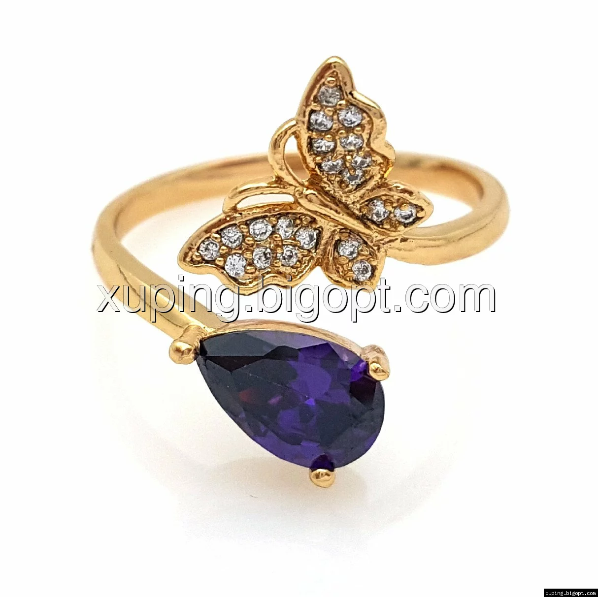 Кольцо Бабочка и Капелька, с фиолетовым цирконием, р.16, р.17,р.18, р.19, позолота Xuping